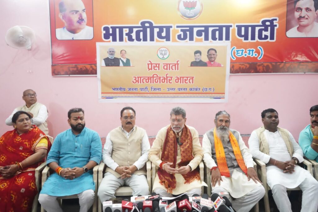 * भाजपा कार्यलय कमल सदन कांकेर में भाजपा प्रदेश अध्यक्ष किरण सिंह देव, लोकसभा सांसद भोजराज नाग ने आत्मनिर्भर भारत संकल्प अभियान विषय पर प्रेसवार्ता ली*