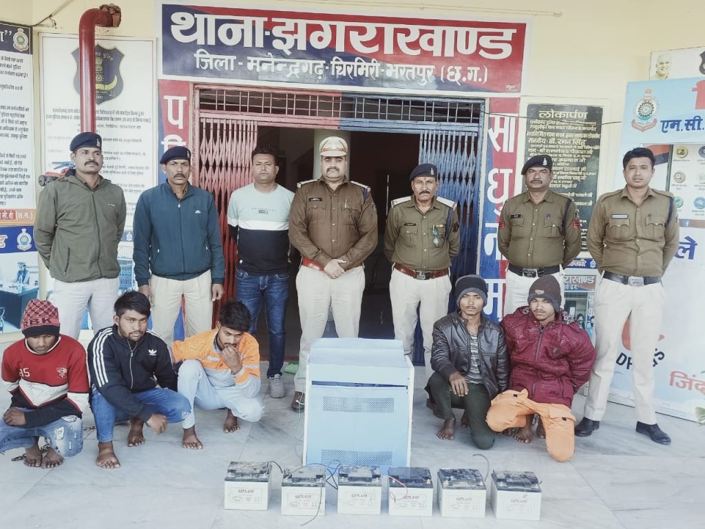 संदेही अंकित यादव उर्फ भोला पिता कन्हैया यादव उम्र 18 वर्ष निवासी मनेन्द्रगढ, दीपक कुमार सिंह पिता विजय कुमार सिंह उम्र 20 वर्ष निवासी मनेन्द्रगढ, सुमित सिंह गोड उर्फ मनडोले पिता बलराम सिंह उम्र 20 वर्ष निवासी मौहारपारा मनेन्द्रगढ, चंद्रशेखर यादव उर्फ कल्लू पिता स्व. मेवालाल यादव उम्र 19 वर्ष निवासी खेडिया टाकिज के पास मनेन्द्रगढ, एवं करन सिंह पिता सेवक सिंह उम्र 20 वर्ष निवासी मनेन्द्रगढ से कड़ाई से पूछताछ करने पर उक्त संदेहियों द्वारा चोरी करना स्वीकार करने पर आरोपियों से चोरी का माल बरामद कर न्यायिक रिमाण्ड पर भेज दिया गया है।