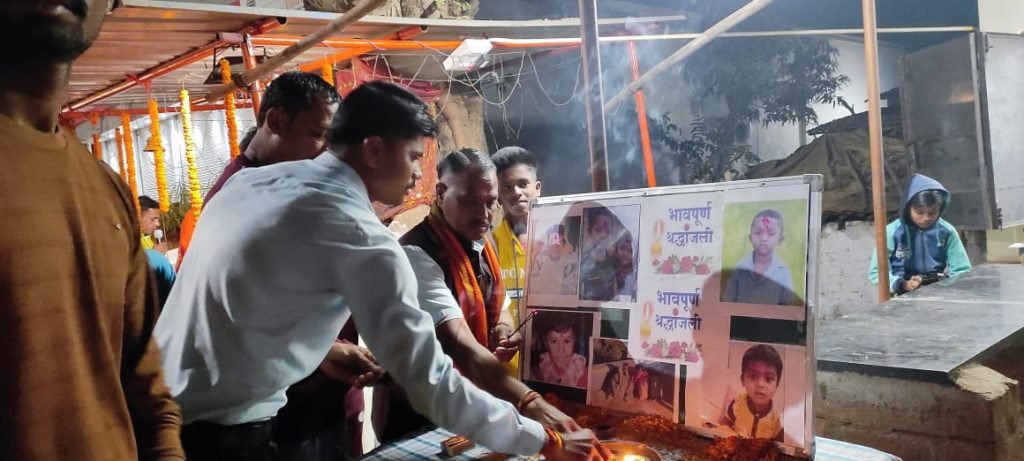 भानुप्रतापपुर / अंतागढ़ रोड वार्ड क्रमांक 12 शिव सेवा समिति के द्वारा कल शाम 7:00 बजे सोमवार को पीपल चौराहा अंतागढ़ रोड शिव भगवान की महा आरती पूजा अर्चना कर जाप किया गया उसके बाद प्रसाद वितरण किया ज्ञात हो कि विगत दिनों कोरर में हुए स्कूली मासूम बच्चों की सड़क दुर्घटना में शिकार हुए बच्चों को मृत आत्मा को शांति के लिए शांति पाठ किया गया है उन्हें श्रद्धांजलि अर्पित किया गया इस अवसर पर वार्ड क्रमांक 12 के पार्षद मनीष साहू भाजपा मंडल अध्यक्ष सांसद प्रतिनिधि नरोत्तम सिंह चौहान एवं बड़ी संख्या में वार्ड वासी भक्तगण उपस्थित थे
