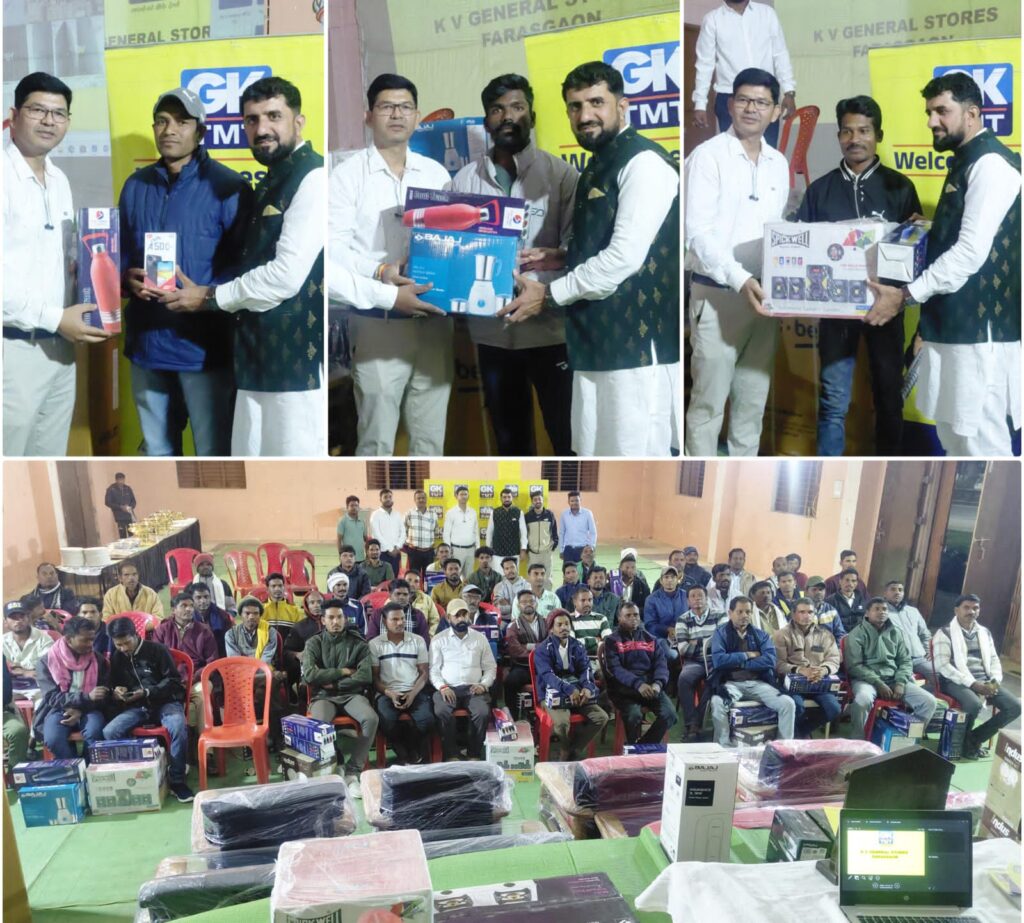 इस दौरान कार्यक्रम के बारे में बताते हुए केवी जनरल स्टोर के संचालक फिरोज मेमन ने कहा उनके द्वारा पिछले वर्ष एक स्कीम निकाली गई थी की, कोई भी ठेकेदार और राजमिस्त्री भाई उनके संस्थान से ज्यादा मात्रा में जीके टीएमटी सरिया खरीद करवाएंगे तो उन्हें खरीदी के अनुसार उपहार दिया जाएगा, जिसमें 20 बंडल से लेकर 1000 बंडल खरीदने वालों के लिए अलग अलग उपहारो की घोषणा किया था. जिसमें बंडलो के अनुसार उपहार निर्धारित थे… सरिया बंडल में पॉइंड के अनुसार ठेकेदार और राजमिस्त्री साथियों को इलेक्ट्रीक आयरन, डिनर सेट, मिक्सर ग्राइंडर, गैस चूल्हा, होम थिएटर सिस्टम, स्मार्टफोन, सोफा सेट और अधिक पॉइंट बनाने वाले को वॉशिंग मशीन उपहार स्वरुप भेंट कर सम्मान किया गया. जी के सरिया के द्वारा 100 से अधिका पेटी ठेकेदार व राजमिस्त्रीयों को उपहार दिया गया। इस दौरान जीके टीएमटी सरिया कंपनी के छत्तीसगढ़ स्टेट हेड अरुण कुमार सिन्हा भी अपनी टीम के साथ मौजूद रहे, वहीं सभी महमानो के लिए स्वादिस्ट भोजन की व्यवस्था भी कम्पनी के द्वारा किया गया था… इस दौरान फरसगांव राजमिस्त्री संघ के सचिव हेमराज भारद्वाज ने बताया की केवी जनरल स्टोर का संचालक फिरोज मेमन के नेतृत्व में पिछले 3 सालों से इस तरह का आयोजन कर, पेटी कांट्रैक्टरों और राजमिस्त्री साथियों का सम्मान कर उपहार दिए जा रहे हैं, यह एक सराहनीय पहल है हम सभी सम्मानित हुए लोग उनका धन्यवाद ज्ञापित करते हैं और आशा करते हैं कि हर वर्ष इसी प्रकार आयोजन पेटी कांट्रैक्टरों और राजमिस्त्री साथियों के लिए होता रहे जिससे सभी को लाभ मिल सके।