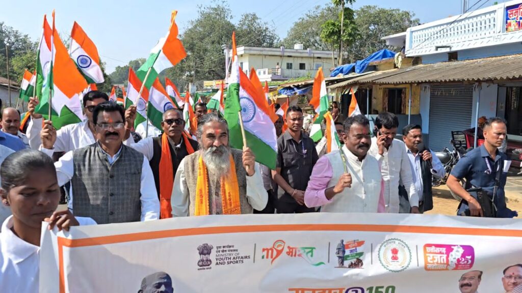 कोंडागांव :- लौह पुरुष सरदार वल्लभभाई पटेल की 150वीं जयंती के अवसर पर समूचे प्रदेश भर में विभिन्न विभागों, संस्थाओं सहित भारतीय जनता पार्टी की ओर से जगह- जगह रन फॉर यूनिटी कार्यक्रम का आयोजन किया गया। इसी तारतम्य में रविवार को केशकाल विधानसभा अंतर्गत ग्राम कोरगांव से विश्रामपुरी तक कांकेर सांसद भोजराज नाग, विधायक नीलकंठ टेकाम समेत सैकड़ों भाजपा कार्यकर्ता और ग्रामीणजन हाथों में तिरंगा लेकर लगभग 10 किलोमीटर के रन फॉर यूनिटी कार्यक्रम में भाग लिया। इस दौरान सांसद, विधायक व स्थानीय प्रशासनिक अधिकारियों ने पीएम सूर्यघर योजना के तहत सोलर प्लेट लगवाने वाले हितग्राही भरत केमरो के घर पहुच कर उन्हें बधाई भी दिया।