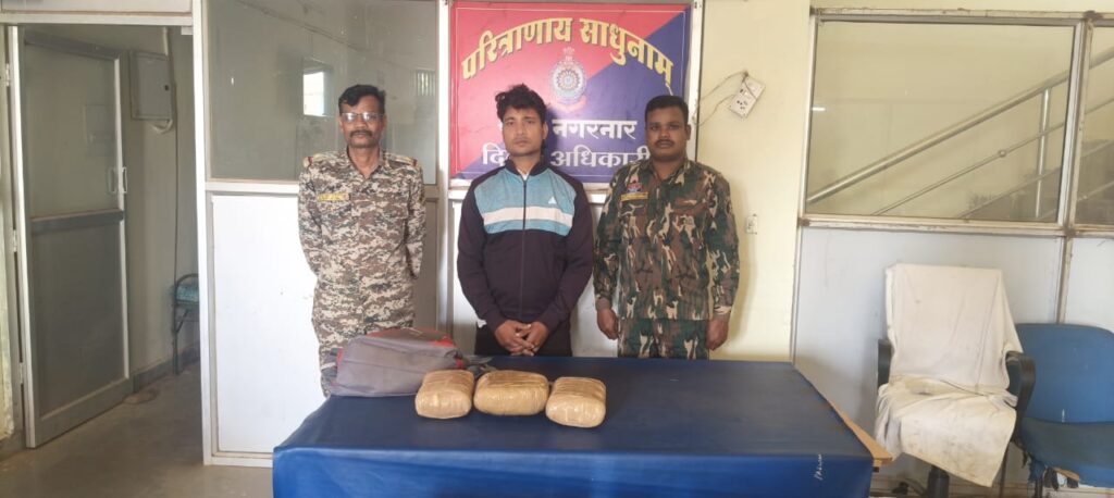 दिनांक 27 नवंबर को थाना नगरनार पुलिस को मुखबिर से सूचना प्राप्त हुई कि एक व्यक्ति अपने ग्रे-लाल रंग के पीठ्ठू बैग में अवैध मादक पदार्थ गांजा रखकर धनपुंजी फॉरेस्ट नाका के पास बस का इंतजार कर रहा है। सूचना मिलते ही थाना प्रभारी निरीक्षक संतोष सिंह के नेतृत्व में पुलिस टीम मौके पर पहुंची और घेराबंदी कर संदिग्ध व्यक्ति को पकड़ा।