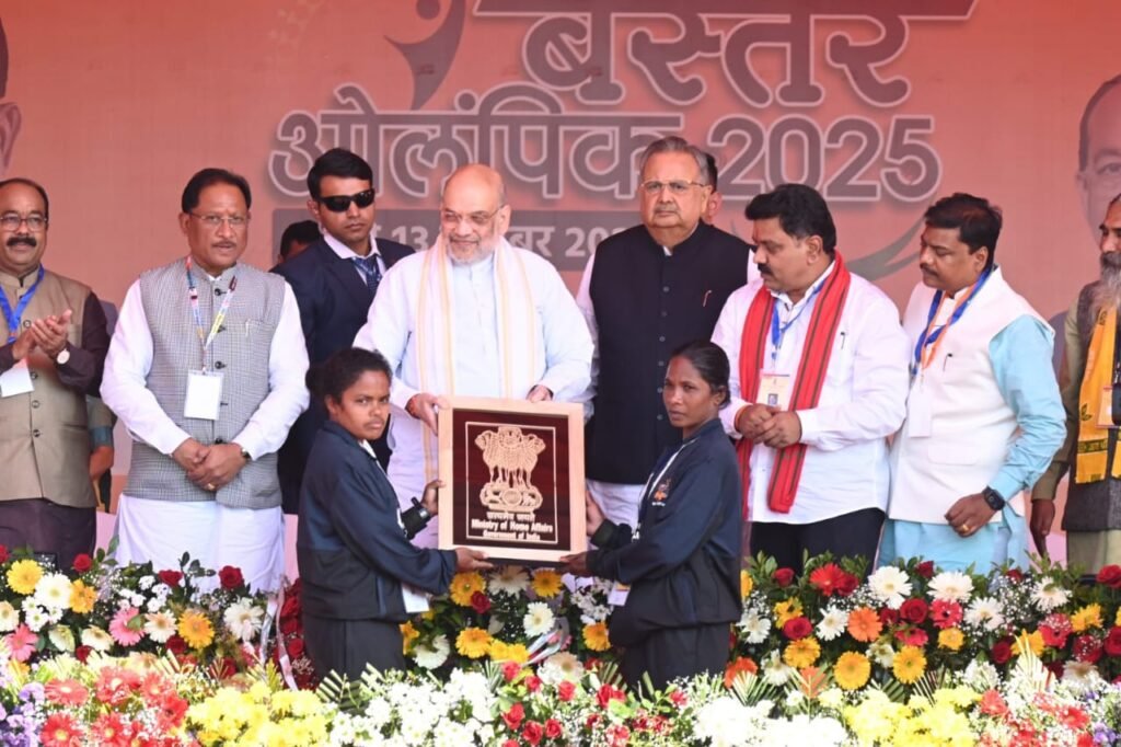 केन्द्रीय गृह एवं सहकारिता मंत्री अमित शाह ने शनिवार को छत्तीसगढ़ के जगदलपुर स्थित इंदिरा प्रियदर्शिनी स्टेडियम में आयोजित बस्तर ओलंपिक 2025 के भव्य समापन समारोह को संबोधित किया। इस अवसर पर मुख्यमंत्री विष्णुदेव साय, उपमुख्यमंत्री विजय शर्मा एवं अरुण साव, विधानसभा अध्यक्ष डॉ. रमन सिंह, भाजपा प्रदेश अध्यक्ष किरण सिंह देव, वन मंत्री केदार कश्यप, सांसद महेश कश्यप सहित अनेक जनप्रतिनिधि और गणमान्य नागरिक उपस्थित रहे।