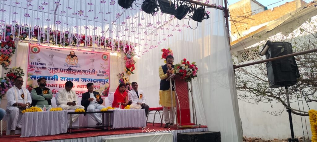 जगदलपुर। दंतेश्वरी वार्ड स्थित सतनामी समाज द्वारा आयोजित गुरु घासीदास जयंती समारोह गुरुवार को श्रद्धा और उत्साह के साथ मनाया गया। कार्यक्रम में पूर्व विधायक रेखचंद जैन, शहर कांग्रेस अध्यक्ष सुशील मौर्य सहित बड़ी संख्या में कांग्रेसजन एवं समाज के पदाधिकारी उपस्थित रहे। इस अवसर पर “मनखे–मनखे एक समान” के उद्घोष से वातावरण गूंज उठा।