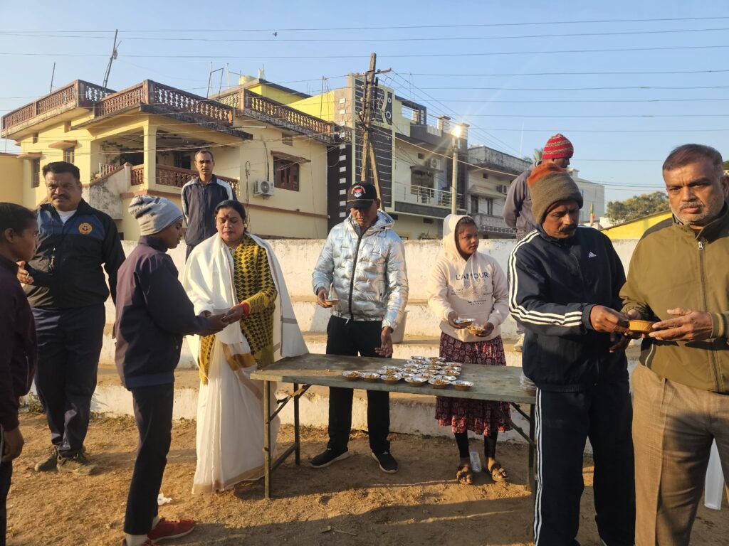 दिनांक 1 जनवरी 2026 को विकास नगर स्टेडियम कोंडागांव में किन्नर समाज कोंडागांव की अध्यक्ष संतोषी किन्नर ने अखिल भारतीय पूर्व सैनिक सेवा परिषद कोंडागांव के द्वारा निशुल्क सैन्य प्रशिक्षण ले रहे युवक एवं यूवतियों को नव वर्ष के पहले दिन पर पौष्टिक आहार वितरण कर सभी युवक एवं यूवतियों को नव वर्ष की शुभकामनाएं दिया