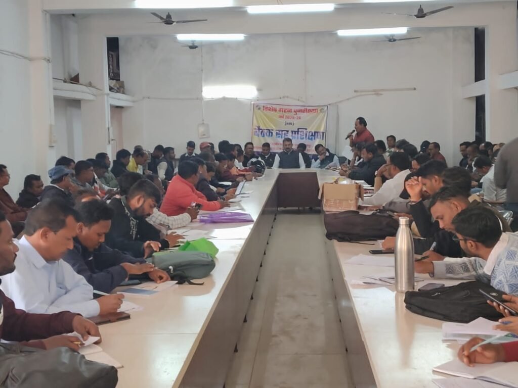 भानुप्रतापपुर। कलेक्टर एवं जिला निर्वाचन अधिकारी कांकेर के निर्देशानुसार भानुप्रतापपुर विधानसभा के बीएलओ सुपरवायजरों का एक दिवसीय प्रशिक्षण आज भानुप्रतापपुर ,चारामा एवं दुर्गुकोंदल के तहसील सभा कक्ष में सम्पन्न हुआ। भानुप्रतापपुर विधानसभा के ईआरओ और एसडीएम गंगाधर वाहिले ने प्रशिक्षण सत्र को संबोधित करते हुए कहा कि निर्वाचन आयोग का मतदाता सूची का गहन पुनरीक्षण अत्यन्त महत्वपूर्ण कार्य है। वर्तमान में ड्राप्ट सूची का प्रकाषन कर दिया गया है। जिसमें नो मैपिंग अर्थात कैटेगरी सी के मतदाताओं को नोटिस दिया जा रहा है सभी बीएलओ नोटिस को तामिल कराकर उसकी एक प्रति कार्यालय में जमा करेंगे। साथ ही साथ नोटिस दिवस को सभी बीएलओ उपस्थित रहेगे। इसके साथ ही उन्होने बीएलओ से नये एवं युवा मतदाताओं के नाम मतदाता सूची में प्रविष्टि करने को निर्देषित किया । जिला स्तरीय मास्टर ट्रेनर्स टिकेश्वर सिंह ठाकुर ने कहा कि कैटैगरी ए और बी के कुछ मतदाताओं के नाम लाजिकल एरर में प्रदर्षित हो रहे है। ऐसे समस्त मतदाताओं के लिए बीएलओ अंडरटैकिंग प्रमाण पत्र सभी को अपलोड करना होगा। साथ ही साथ नो मैपिंग वाले प्र्रकरणों में भी दस्तावेजों को अपलोड बीएलओ को अपने एप में करना होगा। ऐसे मतदाता जो अभी 18 साल पूर्ण कर लिए है उनका नाम मतदाता सूची में सम्मिलत करने के लिए फार्म 6 एकत्र कर ले और उसे आनलाईन भी करते चलें। फार्म 6 में सभी को घोषणा पत्र भी अपलोड करना होगा। तहसीलदार सुरेंद्र उर्वशा ने सभी बीएलओ से कहा कि सब नोटिस को तत्काल मतदाताओं को वितरण कर उससे पावती प्राप्त करें। उन्होने सभी बीएलओ से कहा कि प्रतिदिन अपने अपने मतदान केंद्रों में अविहित अधिकारी के साथ बैठें। निर्वाचन प्रभारी अशोक ठाकुर ने बीएलओ एप में आ रही समस्याओं के बारे में बीएलओ से चर्चा कर उनका निराकरण बताया। साथ ही उन्होने बताया कि युक्तियुक्तकरण के बाद तहसील में कुल मतदान केंद्रों की संख्या 102 हो गयी है साथ ही स्कूलों के युक्तियुक्तरण के बाद मर्ज हुए शालाओ के मतदान केंद्र के भवन भी परिवर्तन किया गया है।आज के प्रशिक्षण में एईआरओ सुरेंद्र उर्वशा,कुलदीप ठाकुर,सत्येंद्र शुक्ला ,जिला स्तरीय मास्टर ट्रेनर्स टिकेश ठाकुर, निर्वाचन प्रभारी अशोक ठाकुर,विधानसभा स्तरीय मास्टर ट्रेनर्स नुमेश सोनी,के.आर.सिन्हा,मनीष गौतम के साथ साथ सुपरवायजर निरंकार श्रीवास्तव,अविनाश सिंह ,प्रदीप सेन, नितिन धु्रव,हुबलाल सिन्हा, दसरूराम सिवाना,अमित डोंगरे ,अमित डोंगरे, के साथ साथ सभी बीएलओ उपस्थित थे।