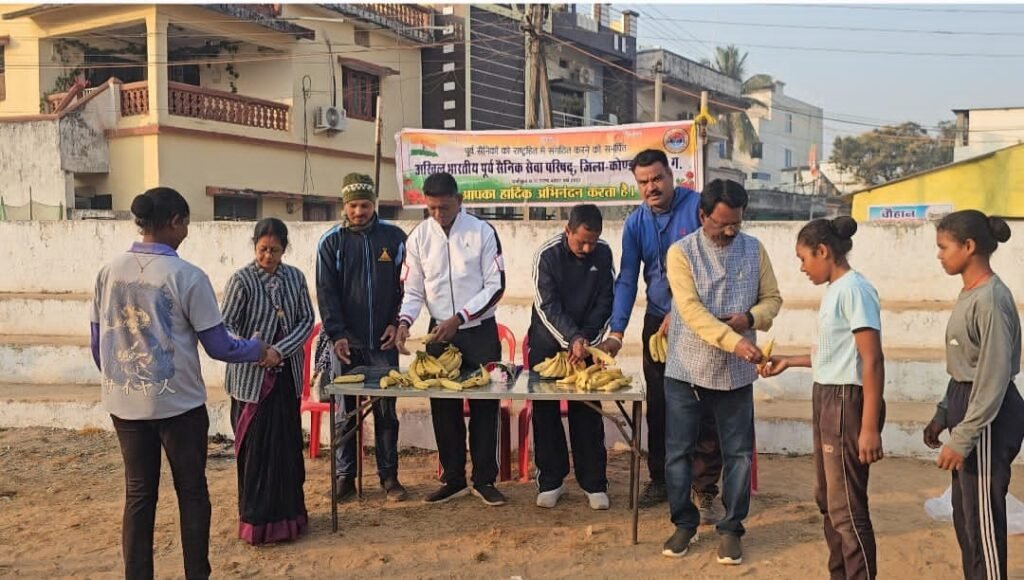 दिनांक 3 जनवरी 2026 को प्रधानमंत्री विश्वकर्मा योजना के प्रदेश सहसंयोजक प्रदीप सिंघो का रायपुर से कोंडागांव नगर में आगमन हुआ l प्रवास के दौरान प्रदीप सिंघो और उनकी धर्मपत्नी मौसमी सिंघो के विकास नगर स्टेडियम कोंडागांव में पहुंचने पर अखिल भारतीय पूर्व सैनिक सेवा परिषद कोंडागांव के पदाधिकारीयों और सदस्यों द्वारा पुष्पगुच्छ देकर उनका आत्मीय स्वागत किया गया l बस्तर संभाग प्रभारी सुब्रत साहा ने प्रदीप सिंघो और उनकी धर्मपत्नी मौसमी सिंघो को निशुल्क सैन्य प्रशिक्षण का निरीक्षण करवाया और बताया कि पूर्व सैनिकों के द्वारा युवाओं को प्रतिदिन 5 किलोमीटर दौड़ कराया जाता है उसके बाद ऊंची कूद, लंबी कूद, गोला फेक और अन्य प्रशिक्षण कराया जाता है तत्पश्चात प्रदीप सिंघो और उनकी धर्मपत्नी मौसमी सिंघो ने सभी प्रशिक्षणार्थियों को फल वितरण किया l इसके बाद प्रदीप सिंघो ने सभी प्रशिक्षणार्थियों को नववर्ष की शुभकामनाएं दिया और कहा की यदि आपने फौज में जाने का लक्ष्य बना लिया है तो उसके लिए आप कड़ी मेहनत करिए कभी हार मत मानिए, क्योंकि कोई लक्ष्य बड़ा नहीं, हारा वही जो लड़ा नहीं l प्रदीप सिंघो ने अखिल भारतीय पूर्व सैनिक सेवा परिषद कोंडागांव के कार्यों की सराहना की और कहा कि कोंडागांव जिला के पूर्व सैनिक निशुल्क सैन्य प्रशिक्षण देने के साथ-साथ युवाओं के अंदर राष्ट्र के प्रति देशभक्ति की भावना भी जागृत कर रहे हैं l इस अवसर पर अखिल भारतीय पूर्व सैनिक सेवा परिषद कोंडागांव के संरक्षक एवं बस्तर संभाग प्रभारी सुब्रत साहा, जिला अध्यक्ष सूरज यादव, सदस्य श्रीकांत तिवारी, राकेश धीवर और निशुल्क सैन्य प्रशिक्षण लेने वाले 75 युवक एवं युवतियां उपस्थित रहे l