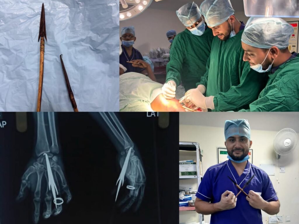 चिकित्सकीय परीक्षण में पाया गया कि मरीज हेमोडायनामिक रूप से स्थिर था, लेकिन कलाई में धंसा तीर नस पर लगातार दबाव बना रहा था, जिससे स्थायी नर्व डैमेज का गंभीर खतरा उत्पन्न हो गया था। डॉक्टरों की तत्परता और कुशलता से तीर को सुरक्षित रूप से निकालकर नस को बचा लिया गया।