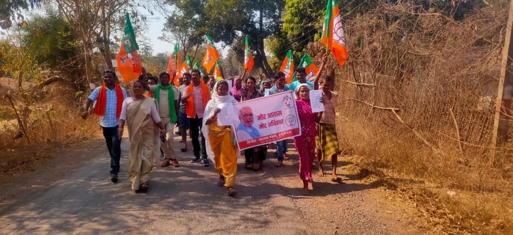 दुर्गूकोंदल | भानुप्रतापपुर विधानसभा भाजपा जिला उपाध्यक्ष एवं मंडल प्रभारी टीकम टांडिया और मंडल अध्यक्ष पीलम नरेटी जी के नेतृत्व में ब्लॉक दुर्गूकोंदल मुख्यालय के ग्राम पंचायत दमकसा शक्ति केंद्र लोहत्तर के पोलिंग बूथ हिलचूर से दमकसा में मोर आवास मोर अधिकार अभियान के तहत हितग्राहियों के साथ भारतीय जनता पार्टी के कार्यकर्ताओं ने निकाली रैली भारतीय जनता पार्टी मंडल दुर्गूकोंदल के द्वारा आज प्रधानमंत्री आवास को लेकर मुख्यमंत्री भूपेश बघेल पर निशाना साधते हुए कहा है कि प्रधानमंत्री नरेंद्र मोदी हर गरीबो को उसका पक्का मकान देना चाहते हैं लेकिन छत्तीसगढ़ में भूपेश बघेल सरकार गरीबों और प्रधानमंत्री के बीच में दीवार बन कर खड़े है भारतीय जनता पार्टी गरीबों को उनका हक दिलाने के लिए संकल्पित है और इसलिए हम भानुप्रतापपुर विधानसभा के हर भाजपा मण्डल स्तर पर मोर आवास मोर अधिकार को लेकर जनता के बीच जा रहे है भारतीय जनता पार्टी प्रधानमंत्री आवास से वंचित लोगों से मिलकर वास्तविक स्थिति का विश्लेषण कर रही है और अब तक के आंकड़े बता रहे हैं कि छत्तीसगढ़ की भूपेश बघेल सरकार ने गरीबों के आवास छीन कर जो अन्याय किया है, उसके खिलाफ पूरे प्रदेश में जनता इस सरकार का विरोध कर रही है और भाजपा के मोर आवास मोर अधिकार जन आंदोलन में शामिल हो रही है प्रधानमंत्री नरेंद्र मोदी हर गरीब को उसका पक्का मकान देना चाहते हैं लेकिन छत्तीसगढ़ में भूपेश बघेल सरकार गरीबों और प्रधानमंत्री के बीच में दीवार बन कर खड़े हैं। प्रदेश भाजपा भारतीय जनता पार्टी गरीबों को उनका हक दिलाने के लिए संकल्पित है और इसलिए हम विधानसभा स्तर पर मोर आवास मोर अधिकार को लेकर जनता के बीच जारहे है इसलिए आज भाजपा कार्यकर्ताओं द्वारा इस पदयात्रा मोर आवास मोर अधिकार के भाजपा मंडल प्रभारी जिलामहिला मोर्चा उपाध्यक्ष शकुंतला नरेटी, प्रदेश प्रशिक्षण सह प्रमुख देवेंद्र टेकाम,मंडल उपाध्यक्ष बीरेंद्र देहारी,महामंत्री फूलसिंह मंडावी, जनपद अध्यक्ष संतो दुग्गा, महिला मोर्चा मंडल अध्यक्ष बसंती यादव, भाजयुमो मंडल अध्यक्ष मोहन नेताम भाजयुमो मंडल महामंत्री विकास राजु नायक, प्रवीण ठाकुर, मंडल प्रशिक्षण सह प्रमुख राहुल राय, दीपक देहारी ललित दुग्गा एवं भाजपा के वरिष्ठ कनिष्ठ कार्यकर्त्ता उपस्थित थे