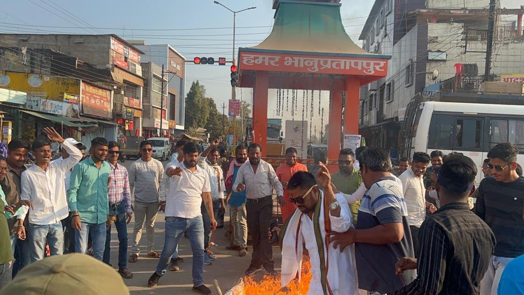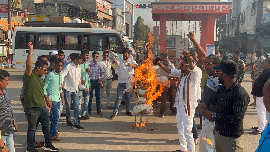 भानुप्रतापपुर -: नरेंद्र मोदी और ED को एक दिखाकर इनकी मिलीभगत को उजागर करने के उद्देश्य से ईडी के जबरिया छापे से आक्रोशित होकर भानुप्रतापपुर मेंन चौक में *युवा कांग्रेस प्रदेश अध्यक्ष आकाश शर्मा के निर्देश पर युवा कांग्रेस के प्रदेश सचिव पंकज राज वाधवानी व विधानसभा अध्यक्ष आकाश यदु के नेतृत्व* में पीएम मोदी किस तरह से कठपुतली की तरह ई डी का दुरुपयोग कर रहे हैं उसी तरह कांग्रेसियों ने मेन चौक पर कठपुतलियों का नाच करवाया और मोदी ई डी का संयुक्त रूप से पुतला दहन किया ।
