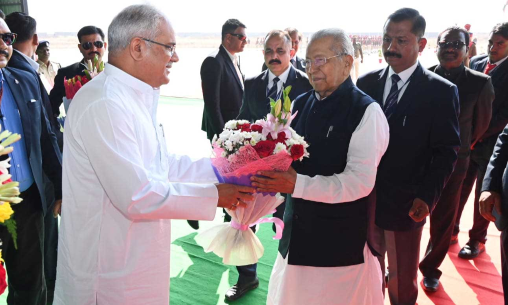 रायपुर। छत्तीसगढ़ के नए राज्यपाल विश्व भूषण हरिचंदन आज सवेरे 9:45 बजे राजधानी रायपुर के स्वामी विवेकानंद विमानतल पहुंचे। विमानतल परिसर स्थित नवीन स्टेट हैंगर में मुख्यमंत्री भूपेश बघेल ने पुष्पगुच्छ भेंट कर उनका छत्तीसगढ़ में आत्मीय स्वागत किया। राज्यपाल को गार्ड आफ ऑनर देकर सम्मानित किया गया ।