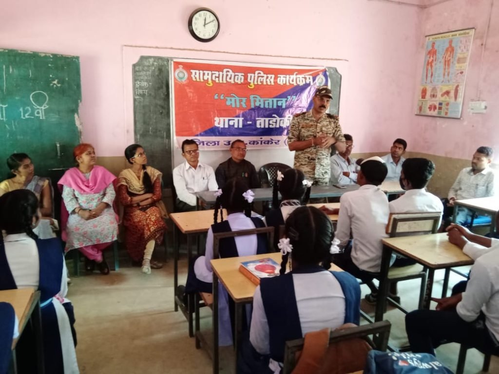 में कार्यक्रम का आयोजन कर स्कूल के छात्रों एवम् शिक्षको को मोबाइल एवम् कंप्यूटर के माध्यम से होने वाले साइबर फ्रॉड की जानकारी दिया गया, साथ ही पॉक्सो एक्ट , गुड टच बेड टच, चाइल्ड पोर्नोग्राफी , अपने परिजनों से शराब पीकर वाहन न चलाने हेतु आग्रह करने , यातायात नियम इत्यादि के संबंध में विस्तार से समझाया गया ।चर्चा के दौरान स्कूल के प्राचार्य के द्वारा बताया गया की स्कूल के 06 छात्रों ने JEE advance exam के लिए क्वालीफाई किया है ,स्कूल के अन्य छात्रों को भी JEE, NEET, एवम् अन्य compitition exam की तैयारी हेतु आगे की पढ़ाई के लिए मार्ग दर्शन कर प्रेरित किया गया, तथा तैयारी के लिए पुलिस विभाग के द्वारा ताड़ोकी में स्थापित लाइब्रेरी में आकर वहां उपलब्ध पुस्तकों का अध्ययन कर लाभ उठाने हेतु बोला गया । बीएसएफ कैंप बोंदानार से फोर्स अन्यत्र स्थानांतरित हो जाने से सर्व सुविधा युक्त कैंप एवम् भवन को पुलिस विभाग के द्वारा आदिम जाति कल्याण विभाग को छात्रावास संचालन हेतु प्रदाय किया गया है जहां पर bondanar शासकीय स्कूल के प्री मैट्रिक छात्रावास को स्थानांतरित किया गया है जिसमें क्षेत्र के नक्सल प्रभावित अंदरूनी गावों के में 50 बच्चे रह कर अध्ययन कर रहे है वहां रहकर अध्ययनरत छात्रों को खेल सामग्री फुटबॉल, क्रिकेट बेट, बाल,स्टंप इत्यादि वितरण किया गया । कार्यक्रम के दौरान स्कूल के प्राचार्य आस कुमार ठाकुर , शिक्षकगण मधुराव वैदे, हितेश ध्रुव, वंदना उईके, शुशीला पवार हॉस्टल अधीक्षक सुखलाल नवगो पुलिस स्टाफ आरक्षक कृष्णा नेताम, कोमल नूरेटी उपस्थित रहे ।