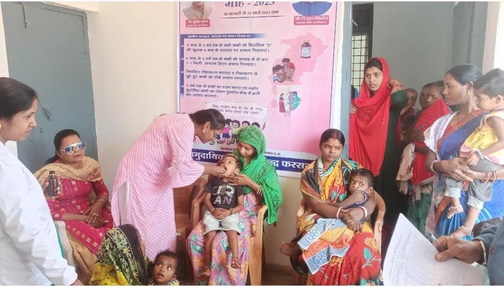 कोंडागांव – फरसगांव ब्लाक में शिशु संरक्षण माह का शुभारंभ खण्ड चिकित्सा अधिकारी डॉ आर ज्योतिर्मई प्रभावती एवं नगर पंचायत पार्षद श्रीमती संगीता पुजारी के द्वारा उप स्वास्थ्य केन्द्र फरसगांव में किया गया। “शिशु संरक्षण माह” कार्यक्रम में उप स्वास्थ्य केन्द्र एवं हेल्थ एंड वेलनेस सेंटर के अंतर्गत सभी गांवों के चिन्हाकित आंगनबाड़ी केंद्र में 9 माह से 5 वर्ष के सभी बच्चों को “विटामिन A” की सिरप पिलाया जाएगा और गर्भवति माताओं का पंजीयन एवं जांच किया जाएगा। शून्य से पांच वर्ष के बच्चों का उम्रानुसार टीकाकरण किया जाएगा साथ ही कुपोषित बच्चों को चिन्हाकित कर “पोषण पुनर्वास केंद्र” (NRC) में भेजा जाएगा, साथ ही किशोरी बालिकाओं को स्वास्थ्य शिक्षा दिया जाएगा।