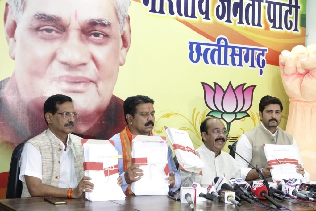 प्रेस वार्ता में मोर आवास मोर अधिकार के प्रदेश संयोजक प्रदेश महामंत्री विजय शर्मा,भाजपा प्रदेश मीडिया प्रभारी अमित चिमनानी ,भाजपा प्रदेश प्रवक्ता केदार गुप्ता माजूद रहे।