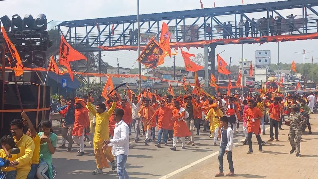 कोंडागांव – फरसगांव नगर में रामनवमी पर्व के अवसर पर 30 मार्च को हिंदू समुदाय के लोगो ने भव्य रूप से नगर में बाइक रैली व शोभायात्रा निकाली । जिसमे पूरा नगर जय श्रीराम के जयघोष से गुज उठा माथे पर भगवा रंग की पगड़ी, कपड़े और गमछा के साथ हाथ में भगवा ध्वज के साथ सैकड़ों की संख्या में हिंदुओ की जब नगर में बाइक रैली निकली तो लोगो ने रैली व स्वागत किया, उत्साहित युवाओं के जुबान पर बस एक ही नारा गुज रहा था सभी युवा एक ही नारा एक ही नाम जय श्रीराम जय श्री राम की जयघोष करते हुए बाइक रैली निकाली, इस दौरान पुलिस बल रैली के साथ सुरक्षा के लिए तैनात रहे ।