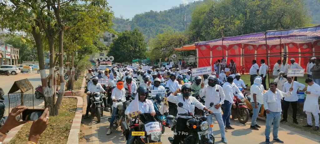 कांकेर/ , प्रदेश पंचायत सचिव संगठन छत्तीसगढ़ के आह्वान पर पंचायत सचिव अपनी एक सूत्रीय मांग परीवीक्षा अवधि पश्चात शासकीयकरण को लेकर 16 मार्च से छत्तीसगढ़ के सभी ब्लॉक मुख्यालय में काम बंद कलम बंद कर अनिश्चितकालीन हड़ताल में बैठ गए है। हड़ताल के 27 वे दिन प्रदेश के समस्त जिले सहित कांकेर जिले में भी जिला स्तरीय हेलमेट से लैस बाईक रैली का आयोजन किया जिसमें जिले में पदस्थ पंचायत सचिव बाईक रैली माकड़ी से निकली गई जिसे कलेक्ट्रेट मार्ग में पहुंचते ही पुलिस ने बेरिकेट लगाकर रोक दिया ।
