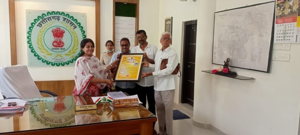 - कांकेर – कोसरिया मरार (पटेल)समाज प्रमुखों द्वारा जिला प्रशासन को अपने समाज के महासम्मेलन की सफल आयोजन के लिये कांकेर कलेक्टर, पुलिस अधीक्षक से आज मिलकर मोमेंटो भेंट कर धन्यवाद ज्ञापित किया।समाज प्रमुखों ने आभार प्रकट करते हुए जिला प्रशासन की पूरे टीम को कम समय में वृहद आयोजन की तैयारी सफलता पूर्वक करने पर प्रसन्नता व्यक्त की । दरअसल बीते 19 मार्च 2023 कोो ग्राा कोशरिया मरार ( पटेल ) समाज के महासम्मेलन एवं शपथ ग्रहण समारोह में मुख्यमंत्री भूपेश बघेल मुख्य अतिथि के रूप में शामिल हुए थे जिसका वृहद आयोजन जिला प्रशासन ने सफलता पूर्वक आयोजित करवाई थी । जिस पर समाज के लोगो में हर्ष व्याप्त है ।