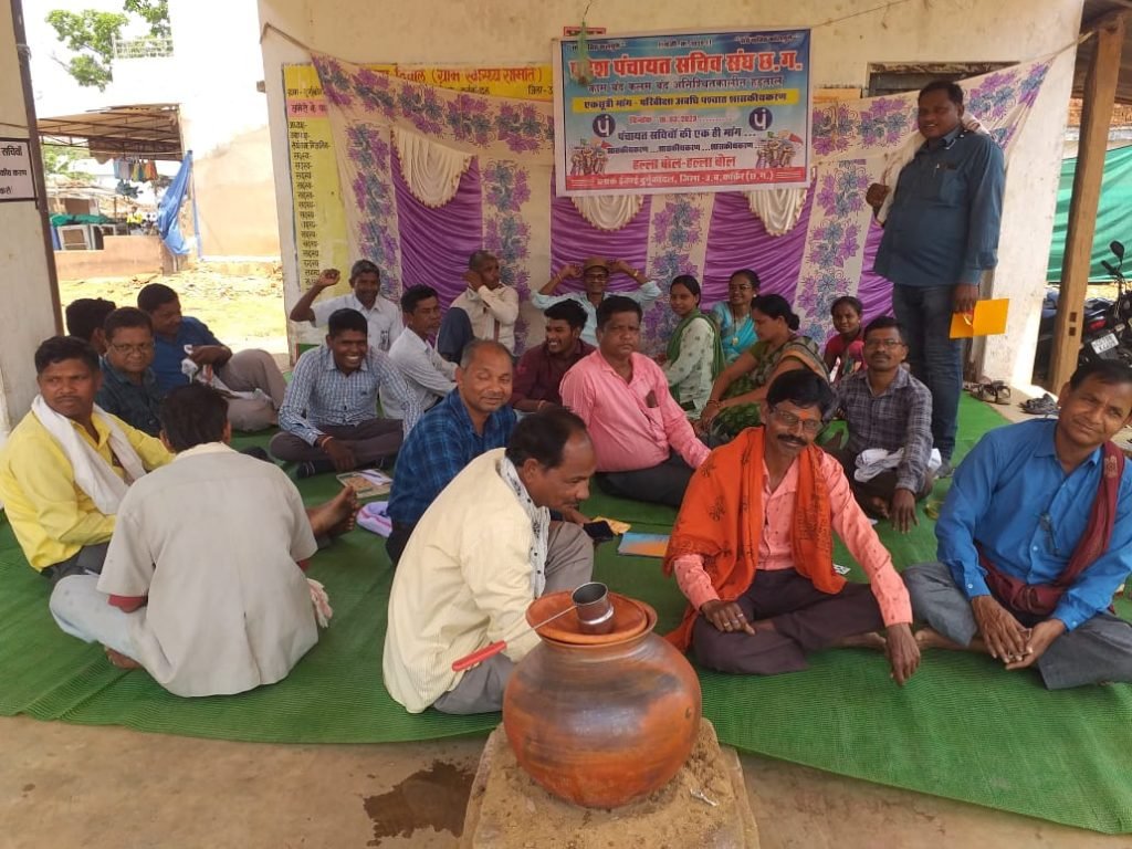 *छत्तीसगढ़ प्रदेश के 11644 पंचायतों में ग्रामसभा आयोजन करने का निर्देश पंचायत संचनालय द्वारा दिया गया था, पंचायत सचिव के द्वारा पूरे प्रदेश के 146 ब्लॉक मुख्यालय में 16 मार्च 2023 से हड़ताल में चले जाने के उपरांत आज 30 दिन होने के कारण ग्रामसभा पूर्णता विफल रहा है ! इस अवसर पर डॉक्टर भीमराव अंबेडकर के जन्म जयंती के अवसर पर पंचायत सचिवों द्वारा पूजा अर्चना करके उनको नमन किया गया। शासन की मंशा अनुरूप ग्रामीणों को पंचायती राज के आधारभूत संरचना ग्रामीणों में पंचायत स्तर से संचालित समस्त योजनाओं के बेहतर संचालन, आय व्यय, कार्य योजना, प्रधानमंत्री ग्रामीण आवास की स्वीकृति का अनुमोदन,15 वित्त के कार्यों का अनुमोदन स्वच्छ भारत मिशन ग्रामीण अंतर्गत शौचालय निर्माण वन अधिकार पट्टा जैसे महत्वपूर्ण कार्यों क्रियान्वयन एवं अनुमोदन से ग्रामीणों को वंचित होना पड़ा है । सचिवो के हड़ताल से ग्रामीणों को परेशानियों का सामना करना पड़ रहा है। छत्तीसगढ़ के सभी सरपंचों द्वारा हड़ताल स्थल में पहुंचकर पंचायत सचिवों की मांगों का पूर्ण समर्थन किया गया पंचायती राज में सरपंच और सचिव की महत्वपूर्ण भूमिका होती है एक सिक्के के दो पहलू के रूप में जाने पहचाने जाते हैं बिना सचिवों के पंचायत की अवधारणा या कल्पना करना असंभव है इस अवसर पर सरपंच संघ के प्रदेश अध्यक्ष गोपाल धीवर द्वारा सचिवों के समर्थन में छत्तीसगढ़ के ग्राम पंचायतों में ग्राम सभा का विरोध करते हुए पंचायत सचिवों के सचिव सभा का समर्थन किया सचिव सभा के आरंग ब्लॉक के ब्लॉक मुख्यालय के धरना स्थल पर उपस्थित होकर अपने उद्बोधन में कहा कि पंचायत सचिव का मांग परिवीक्षा अवधि पश्चात शासकीयकरण जायज है सरकार इसे अविलंब पूरा करें। पंचायत सचिवों के 30 वे दिन दिन हड़ताल में चले जाने से शासन महत्वकांक्षी योजना सामाजिक आर्थिक सर्वेक्षण बेरोजगारी भत्ता राजीव गांधी ग्रामीण भूमिहीन मजदूर न्याय योजना किसान न्याय योजना गोधन न्याय योजना के सभी कार्य गोबर खरीदी वर्मी खाद केंचुआ खरीदी वर्मी टांका निर्माण पशु शेड निर्माण निर्माण कार्य मनरेगा से संबंधित समस्त कार्य जन्म मृत्यु का पंजीयन राशनकार्ड सामाजिक सहायता के कार्यक्रम पेंशन योजना श्रद्धांजलि योजना पेयजल स्वच्छ भारत मिशन ग्रामीण अंतर्गत शौचालय निर्माण वन अधिकार पट्टा वितरण बजट निर्माण पंच सरपंच का मानदेय ऑडिट से संबंधित कार्य लेखा संधारण का संधारण जैसे महत्वपूर्ण कार्य पूर्ण रूप से प्रभावित है ।पंचायत सचिव संघ के प्रांत अध्यक्ष तुलसी साहू द्वारा आरंग के सचिव सभा में पहुंचकर डॉक्टर भीमराव अंबेडकर जी के जन्म जयंती के अवसर पर केक काटकर बाबा साहब को नमन किया एवं अपने उद्बोधन में कहां की हम सब अपने संव