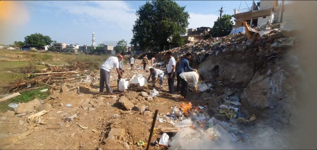 कांकेर —- जनसेवी संस्था “जन सहयोग” द्वारा आज कांकेर शहर के मध्य स्थित दूध नदी के स्टॉप डेम के नीचे स्तंभों के बीच फंसे कचरे तथा मलबे को निकाल बाहर करने हेतु स्वच्छता अभियान सुबह सवेरे से चलाया गया, जिसमें कड़ी धूप में पसीना बहाते हुए जन सहयोग के समाजसेवियों ने बहुत बड़ी मात्रा में स्टॉप डेम से लेकर रमा लॉज के निकट तक कचरा एवं मलवा