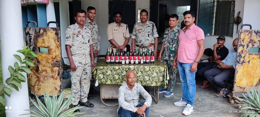 थाना भानुप्रतापपुर को मुखबिर की सूचना पर ग्राम हरहरपानी में आरोपी दसरू राम दुग्गा पिता स्वर्गीय दुर्गुराम दुग्गा के द्वारा अवैध शराब बिक्री करने सूचना मिलने पर थाना भानूप्रतापपुर पुलिस द्वारा रेड कार्यवाही किया गया जिसमें आरोपी दशरू राम दुग्गा के कब्जे से 11 नग बियर एवं 5 नग गोवा व्हिस्की अंग्रेजी शराब एवम शराब बिक्री रकम 1520 रुपया को जप्त किया गया। आरोपी के खिलाफ आबकारी एक्ट की धारा 34(2) के तहत कार्यवाही कर माननीय न्यायालय के आदेश पर रिमांड पर जेल भेजा गया।