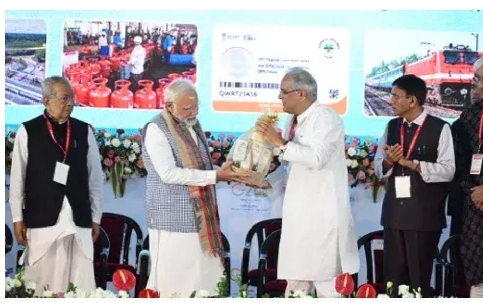 प्रधानमंत्री का छत्तीसगढ़ के मुख्यमंत्री भूपेश बघेल ने उन्हे स्मृति चिन्ह के रूप छत्तीसगढ़ के कारीगरों द्वारा तैयार अंगवस्त्र और मिलेट्स की टोकरी भेंट की । लोकार्पण कार्यक्रम को पहले केंद्रीय मंत्री नितिन गड़करी ने संबोधित किया और अभी अभी छत्तीसगढ़ के मुख्यमंत्री भूपेश बघेल कार्यक्रम को संबोधित किया।
