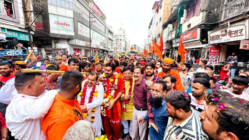 आज संस्था सर्व धर्म द्वारा हर वर्ष अनुसार इस वर्ष भी सावन महीने में इंदौर में बड़ी कावड़ यात्रा का संचालन करने वाले गोलू शुक्ला उनकी कावड़ टीम का स्वागत प्रिंसेस यशवंत रोड पर संस्था अध्यक्ष मंजूर बैग की उपस्थिति में पुष्प मालाओं से स्वागत कर उन्हें बधाई दी आज संस्था सर्वधर्म संघ ने एकता भाईचारे का परिचय देते हुए एकता भाईचारे के मिसाल पेश की इस अवसर पर संस्था उपाध्यक्ष रियाज खान आशीष राय गोलू भाई मौलाना हकीम फैजान बैग मोनू खान सतीश शर्मा जावेद खान साबिर शाह राहुल मेवाड़ा कुतुबुद्दीन तय्यब अली ऋषभ रघुवंशी आदि लोग पुष्पमाला मालाओं से स्वागत किया