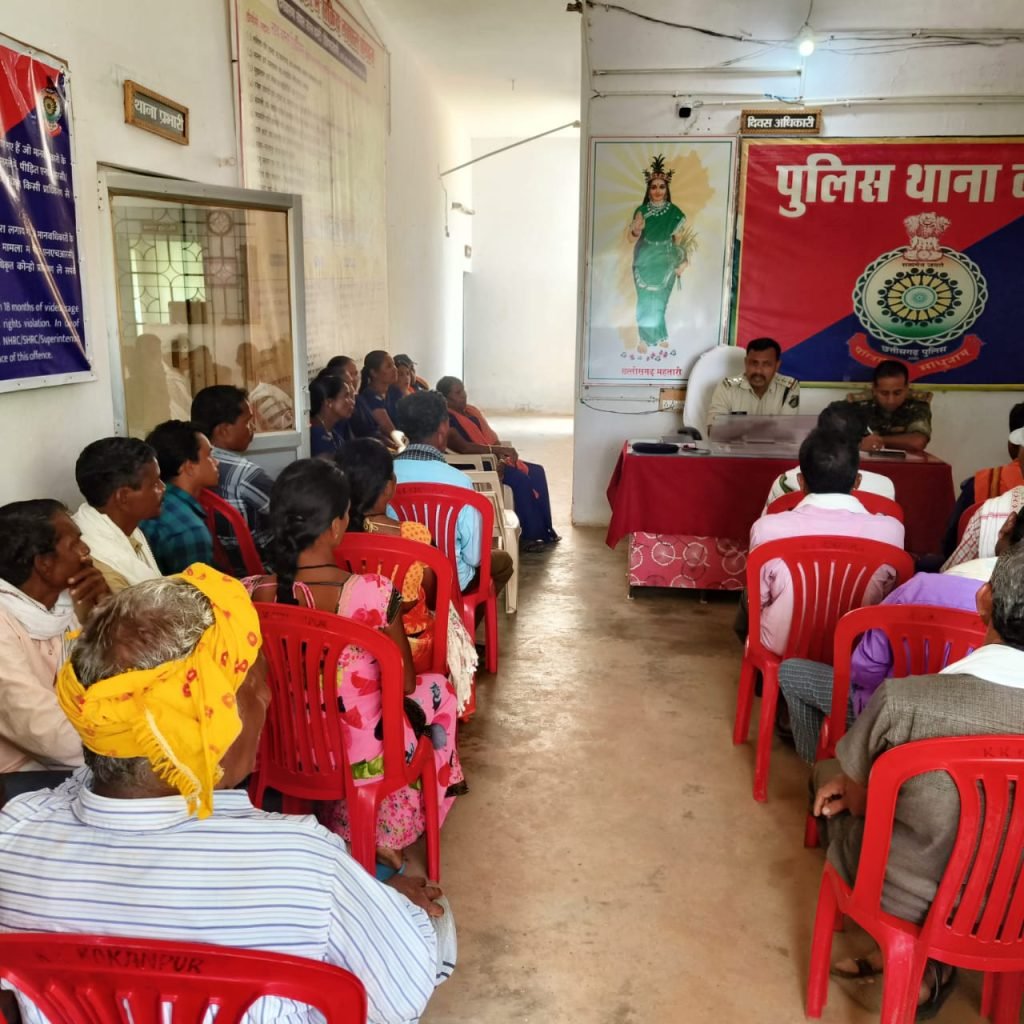 विधानसभा चुनाव से संबंधित, धर्मांतरण से संबंधित एवं गांव के विभिन्न छोटी-बड़ी समस्याओं से संबंधित बातों को लेकर आपस में चर्चा कर भविष्य के कार्य कलापो के संबंध में चर्चा किया गया l आगामी चुनाव को देखते हुए शांति व्यवस्था बनाए रखने ,संदिग्ध व असामाजिक व्यक्तियों की जानकारी थाना में देने और नक्सली मूवमेंट के बारे में जानकारी देने ,गांव क्षेत्र में कोई बाहरी व्यक्ति जैसे फैरी वाले ,जड़ी बूटी वाले , साड़ी,कंबल,कुर्सी बेचने वालो के गांव में आने पर सूचना थाना में देना व उसे अपने गांव में नही ठहरने देना । थाना में निरंतर जो दिन तय है उपस्थित होने हिदायत दिया गया। अपने गांव क्षेत्र में होने वाली गतिविधियों पर नजर रखने पुलिस को सूचना देने हिदायत दी गई है। इसके साथ ही अभी वर्तमान में हो रही सायबर क्राइम,ठगी ,के बारे में बताया गया और उनको अपने गांव स्तर में व अपने घरों में बेटे ,बेटी जो भी घर में एंड्रायड मोबाइल प्रयोग करते है उसको बताने हिदायत दिया गया। साथ ही छोटे बच्चो को गाड़ी चलाने नही देना न ही शराब के नशे में वाहन चलाना बताया गया। और गाड़ी चलाते समय गाड़ी से सम्बन्धित सभी दस्तावेज अपने पास अपडेट रखने हिदायत दिया गया। साथ ही साथ गांव स्तर में या आस पास कोई भी कानून के विरुद्ध अपराध हो रहा है या कोई कर रहे है तो तत्काल थाना कोरर पुलिस का मोबाइल न.9479194111 में फोन कर जानकारी देने हिदायत दिया गया।