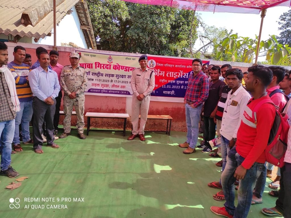 तथा ग्राम माकड़़ी में जिला परिवहन अधिकारी कोंडागांव गौरव साहू एवं यातायात कोण्डागांव के द्वारा लर्निंग लायसेंस सिविर लगाया गया। सड़क सुरक्षा सप्ताह के कायर्क्रम में यातायात प्रभारी निरीक्षक रोहित कुमार बंजारे एवं स्टाफ तथा रानी दुगार्वती सेवा संस्था कोण्डागांव के अध्यक्ष रितेश एवं उनके स्टाफ उपस्थित हुए।