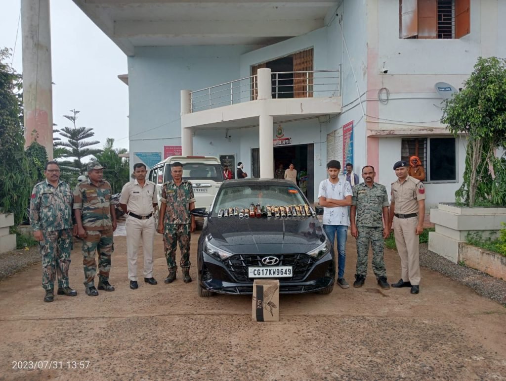 आरोपी- क्षितिज कुमार खत्री पिता हीरालाल खत्री उम्र 22 वर्ष निवासी गायत्री नगर कॉलोनी जगदलपुर,, अवैध शराब परिवहन को रोकने तथा प्रभावी कार्यवाही करने निर्देश किया गया है, थाना प्रभारी प्रशिक्षु रविंद्र कुमार मीणा (भापुसे) के नेतृत्व में पेट्रोलिंग पर रवाना हुए थे की मुखबिर से सूचना मिला की एक व्यक्ति काले रंग की वाहन क्रमांक cg17kw9649 आता हुआ दिखाई दिया जिसे नाकाबंदी कर पकड़े जिसे नाम पता पूछने पर अपना नाम क्षितिज कुमार खत्री पिता हीरालाल खत्री उम्र 22 वर्ष निवास गायत्री नगर कॉलोनी चित्रकूट रोड दलपत सागर वार्ड जगदलपुर का रहने वाला बताया जिसके कब्जे से अवैध अंग्रेजी शराब