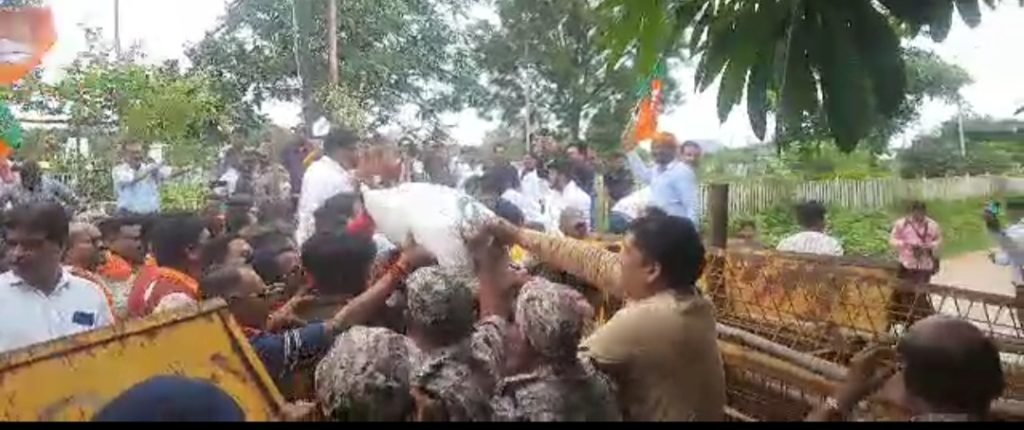 । धरना प्रदर्शन पश्चात् भाजपा नेता भाजपा के पूर्व प्रदेश अध्यक्ष विक्रम उसेण्डी, भाजपा जिलाध्यक्ष सतीश लाटिया भाजपा किसान मोर्चा प्रदेश उपाध्यक्ष आलोक ठाकुर, किसान मोर्चा जिलाध्यक्ष विजय मण्डावी, पूर्व विधायक देवलाल दुग्गा, सुमित्रा मारकोले, भोजराज नाग के नेतृत्व में अमानक व घटिया खाद बोरी के साथ शहर के नये बस स्टेण्ड से पैदल ही कलेक्ट्रेट का घेराव करने निकले जहां उनकी पुलिस वालों के साथ तगड़ी झड़प हुई व भाजपा के नेता बेरीकेड तोड़ने में कामयाब भी हो गये। पुलिस वालों के साथ भाजपा नेताओं की काफी देर तक झुमाझटकी होती रही। अंत में भाजपा नेताओं ने एसडीएम कांकेर को मुख्यमंत्री के नाम ज्ञापन सौंप कर अपना प्रदर्शन समाप्त किया।
