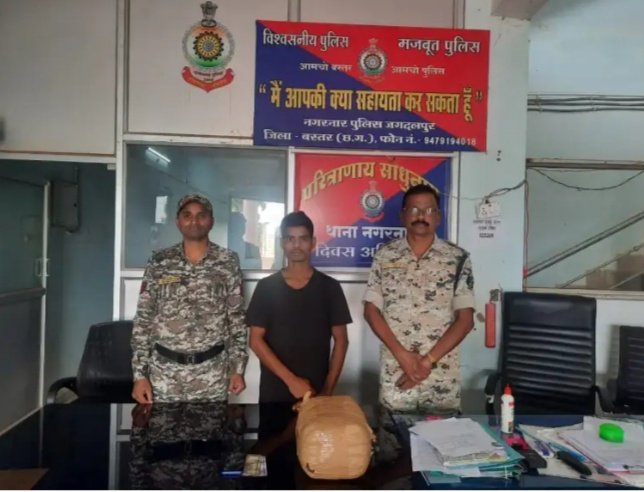 अभिषेक कुमार झा पिता स्व० कन्हैया लाल झा जाति ब्राम्हण उम्र 22 वर्ष निवासी ग्राम बिहारी पोस्ट नरौछधाम थाना जाले जिला दरभंगा बिहार… उमनि एवं वरिष्ठ पुलिस अधीक्षक महोदय जितेन्द्र सिंह मीणा के दिशा-निर्देशन एवं नगर पुलिस अधीक्षक महोदय श्री विकास कुमार (भा.पु.से.) के मार्गदर्शन में थाना नगरनार सीमा से लगे हुये उड़ीसा प्रांत से होने वाले अवैध मादक पदार्थ गांजा का परिवहन को रोकने तथा प्रभावी कार्यवाही करने निर्देशित किया गया है। इसी तारतम्य में थाना नगरनार के थाना प्रभारी महोदय श्री रविन्द्र कुमार मीणा (प्रशिक्षु भा.पु.से) के नेतृत्व में थाना नगरनार से कार्यवाही हेतु टीम गठित किया गया। पतासाजी दौरान जरिये मुखबीर सुचना मिला कि उड़ीसा से जगदलपुर की ओर आ रही गुप्ता ट्रेवल्स की यात्री बस में एक संदिग्ध व्यक्ति सवार है जो अपने पास रखे बैग में अवैध रूप से मादक पदार्थ गांजा रखकर उड़ीसा प्रांत से जगदलपुर की ओर गुप्ता ट्रेवल्स की यात्री बस में आ रहे है कि सुचना तत्काल वरिष्ठ अधिकारियो का दिया गया जिस पर तत्काल टीम द्वारा ग्राम धनपुंजी फारेस्ट नाका एनएच 63 मेन रोड के पास गुप्ता ट्रेवल्स की यात्री बस को रोककर बस को चेक किया गया जिसमें मुखबीर के बताये हुलिया के एक संदेही को पकड़ा गया नाम पता पूछने पर अपना नाम अभिषेक कुमार झा पिता स्व० कन्हैया लाल झा जाति ब्राम्हण उम्र 22 वर्ष निवासी ग्राम बिहारी पोस्ट नरौछधाम थाना जाले जिला दरभंगा बिहार का रहने वाला बताया। जिनके पास रखे बैग को चेक करने पर 5.400 किलोग्राम अवैध मादक पदार्थ गांजा किमती 54000 / रु. नगदी रकम 800 / रूपये को बरामद कर जप्त किया गया। उक्त आरोपी के विरूद्ध थाना नगरनार में एन.डी.पी.एस. एक्ट कायम कर विवेचना में लिया गया है। कार्यवाही में प्र0आर0 155 अहिलेश नाग, प्र0आर0 424 श्याम चन्द्राकर, आर0 872 तीरिथराम फेकर. सहा0आर0 5140 विरेन्द्र ठाकुर, सैनिक 37 जगन्नाथ नाग का विशेष योगदान रहा है।