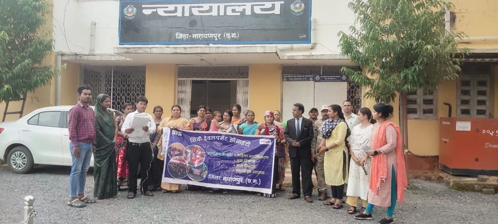 उत्तरा कुमार कश्यप जिला सत्र- न्यायाधीश अध्यक्ष जिला विधिक सेवा प्राधिकरण कोंडागांव सचिव श्रीमती अम्बा शाह जिला विधिक सेवा प्राधिकरण कोंडागांव हरेन्द्र सिंह नाग मुख्य न्यायिक मजिस्ट्रेट नारायणपुर* के आदेश अनुसार प्रबंध कार्यालय नारायणपुर में विधिक साक्षरता शिविर का आयोजन किया गया जिसमें *रिटेनर अधिवक्ता चंद्र प्रकाश सर* के द्वारा संविधान में प्रदत मूल अधिकार शिक्षा का अधिकार भारतीय दंड संहिता में महिलाओं के विरुद्ध होने वाले घटना के दंड, घरेलू हिंसा अधिनियम, पोक्सो अधिनियम, हिंदू उत्तराधिकार अधिनियम के अंतर्गत पुत्र पुत्री को संपत्ति पर बराबर के अधिकार के संबंध में विधिक जानकारी दिया गया। 8 मार्च को महिला सशक्तिकरण के संबंध में जानकारी दिया गया। पैरालीगल वॉलिंटियर *संदीप भगत थाना झाराघाटी, सिटी कोतवाली थाना नारायणपुर सालेहा परवीन, कोहकामेटा थाना रूपाली बघेल, प्रबंध कार्यालय नारायणपुर घासीराम नेताम, किशोर न्याय बोर्ड नारायणपुर श्रीमती हिना नाग* के द्वारा बाल विवाह प्रतिषेध अधिनियम 2006 बाल श्रम यातायात नियम मानव तस्करी बच्चों की सहायता के लिए हेल्पलाइन नंबर 1098 नालसा की योजनाओं के संबंध में विकलांग बच्चों के लिए विधिक संरक्षण योजना नालसा आदिवासियों के अधिकारों का संरक्षण और प्रवर्तन के लिए विधिक सेवाएं, नि:शुल्क अधिवक्ता के संबंध में एवं अन्य योजनाओं के संबंध में विधिक जानकारी दिया गया विधिक साक्षरता शिविर में *सुश्री भामिनी साहू प्रोग्राम कोऑर्डिनेटर महिला डेवलपमेंट सेंटर कांकेर* अपने महिला सदस्य टीम सहित उपस्थित रहे साथ ही साथ न्यायालय परिसर में उपस्थित महिला एवं अन्य व्यक्ति शिविर में उपस्थित रहे।