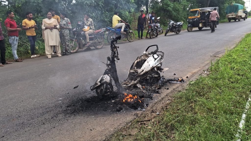 जानकारी के अनुसार ग्राम बानगांव निवासी 20 वर्षीय युवक पंकज बघेल अपनी दीदी को फरसगांव छोड़कर वापस जाने के दौरान लगभग 3:30 बजे पासंगी पुल के पास चलती स्कूटी में अचानक आग लग गई, जब वह पीछे पलट कर देखा की स्कूटी में आग लगी हुई थी ,उसने जान बचाने तत्काल स्कूटी को खड़ा कर दूर भाग गया । लगभग 20 मिनट में स्कूटी पूरी तरह जलकर खाक हो गया । घटना की खबर लगते ही फरसगांव पुलिस घटना स्थल पर पहुचकर जांच कर रही है ।