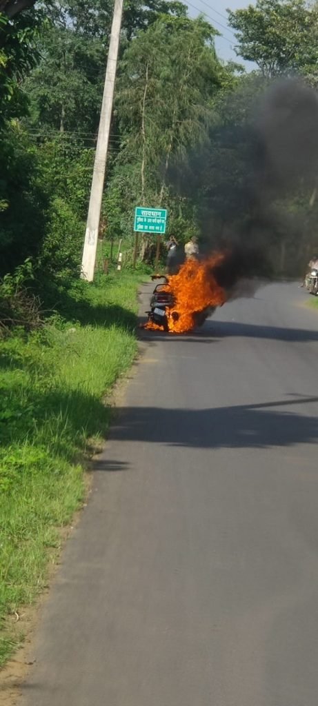 जानकारी के अनुसार ग्राम बानगांव निवासी 20 वर्षीय युवक पंकज बघेल अपनी दीदी को फरसगांव छोड़कर वापस जाने के दौरान लगभग 3:30 बजे पासंगी पुल के पास चलती स्कूटी में अचानक आग लग गई, जब वह पीछे पलट कर देखा की स्कूटी में आग लगी हुई थी ,उसने जान बचाने तत्काल स्कूटी को खड़ा कर दूर भाग गया । लगभग 20 मिनट में स्कूटी पूरी तरह जलकर खाक हो गया । घटना की खबर लगते ही फरसगांव पुलिस घटना स्थल पर पहुचकर जांच कर रही है ।