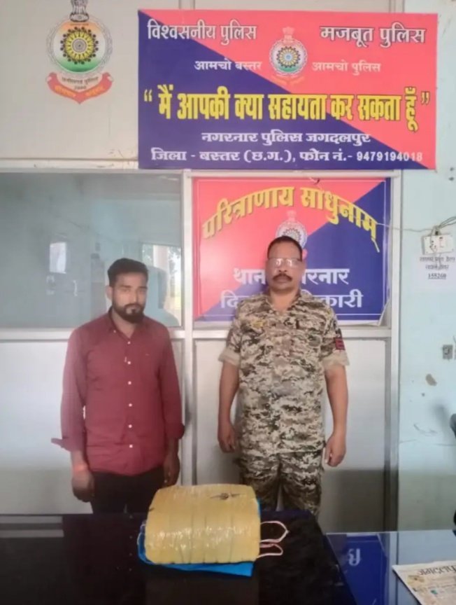 आगामी विधानसभा चुनाव 2023 को मद्देनजर रखते हुये थाना क्षेत्र में अवैध गांजा की बिक्री / तस्करी पर प्रभावी कार्यवाही करने निर्देशित किया गया है इसी तारतम्य में थाना प्रभारी रविन्द्र कुमार मीना ( भा०पु०से०) के नेतृत्व में थाना स्तर पर कार्यवाही हेतु टीम गठित किया गया, पतासाजी दौरान टीम को जरिये मुखबीर सुचना मिला कि गुप्ता ट्रेवल्स की यात्री बस में एक संदिग्ध व्यक्ति सवार है जो अपने पास रखे बैग में अवैध रूप से मादक पदार्थ गांजा रखकर उड़ीसा प्रांत से जगदलपुर की ओर आ रहा है कि सुचना तत्काल वरिष्ठ अधिकारियो को देकर तत्काल टीम द्वारा ग्राम धनपुंजी फारेस्ट नाका एनएच 63 मेन रोड के पास पहुंचकर गुप्ता ट्रेवल्स की यात्री बस को रोककर बस को चेक किया गया जिसमें मुखबीर के बताये हुलिया के एक संदेही को पकड़ा गया नाम पता पूछने अपना नाम शिवेन्द्र पटेल पिता जगजाहिर प्रसाद पटेल उम्र 28 वर्ष जाति कुनबी निवासी ग्राम कुईयाकला थाना मनगमा पोस्ट मनगमा तहसील रायपुर जिला रीवा म०प्र० का निवासी होना बताये। जिनके पास रखे बैग को चेक करने पर बैग में 5.324 किलाग्रामे मादक पदार्थ गांजा किमती 53,240 रू. को बरामद कर जप्त किया गया। उक्त आरोपी के विरूद्ध थाना नगरनार में एन. डी. पी. एस. एक्ट का मामला कायम कर विवेचना में लिया गया है है। कार्यवाही में सउनि रैनूराम मौर्य प्र0आर0 80 रमेश पासवान, प्र0आर 424 श्यामलाल चन्द्राकर, आर0 378 यशवंत ध्रुव, आर 1238 चन्द्र कुमार कंवर चालक सहायक आर0 5140 विरेन्द्र ठाकुर का विशेष योगदान रहा है।