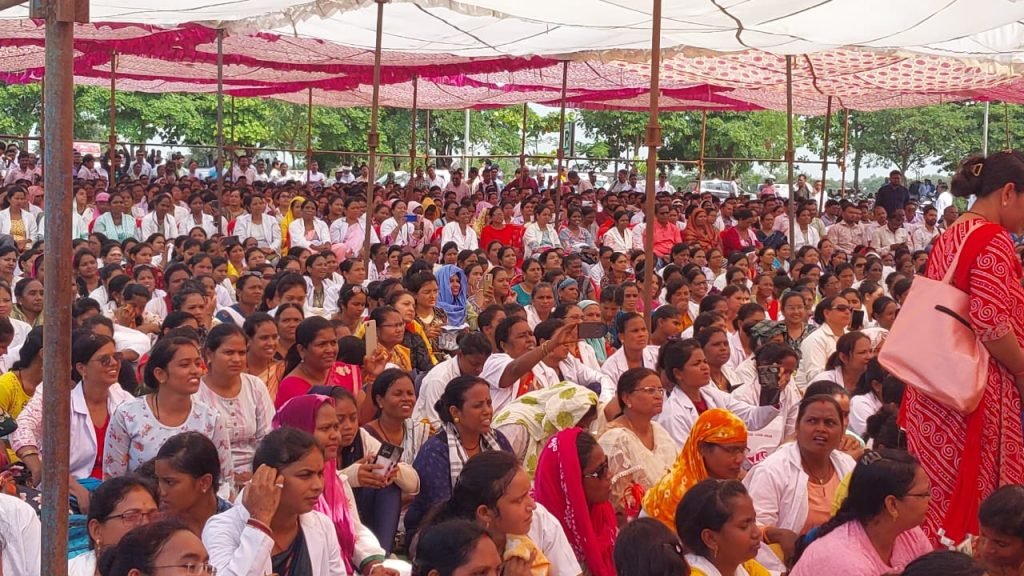 रायपुर छत्तीसगढ़ हेल्थ फेडरेशन के आंदोलनरत डॉक्टर्स ,ग्रामीण स्वास्थ्य संयोजको ,नर्सेस पर सरकार ने अपना तानाशाही रवैया अपनाना शुरू कर दिया है सरकार अब आंदोलनरत स्वास्थ्य कर्मियों पर बर्खास्त एवं निलंबन की कार्यवाही कर रही है अभी तक प्रदेश के 3500 स्वास्थ्य कर्मियों पर गाज गिर चुकी है ,इससे आक्रोशित छत्तीसगढ़ हेल्थ फेडरेशन के 40000 डॉक्टर्स ,नर्सेस ,ग्रामीण स्वास्थ्य संयोजको ने हड़ताल के 15वे दिन सामूहिक इस्तीफा देकर सरकार के इस आदेश को आइना दिखाया है |ज्ञातव्य है कि छत्तीसगढ़ में हेल्थ फेडरेशन के अनिश्चितकालीन हड़ताल से प्रदेश भर में स्वास्थ्य व्यवस्था चरमराई हुई है जिससे कर्मचारियों अधिकारियों पर सख्त कार्यवाही करते हुए ऐसा कदम उठाया है ,इस पर बात करने पर स्वास्थ्य संयोजक कर्मचारी संघ जिला रायपुर के जिला अध्यक्ष चंद्रशेखर चंद्राकर जी ने कहा कि हम 5 सूत्रीय मांगों के लिए धरने पर बैठे हुए सरकार हमारी मांगो पर फेडरेशन से बातचीत के बजाय बर्खास्तगी एवं निलंबन का रुख अपना रही है जो न्याय संगत नही है इससे कर्मचारियों में सरकार के प्रति आक्रोश बढ़ता जाएगा और हड़ताल तब तक अनवरत जारी रहेगी तब तक जब तक मांगे पूरी नही हो जाती |