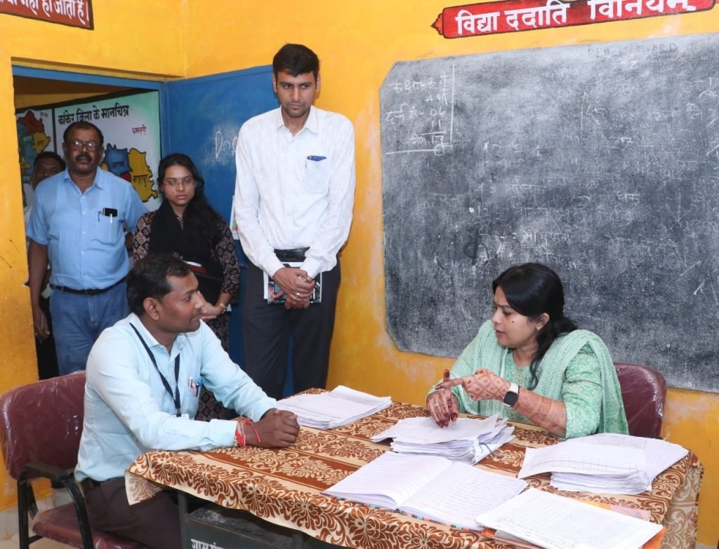 काँकेर — मतदाता सूची के द्वितीय विषेष संक्षिप्त पुनरीक्षण कार्यक्रम अंतर्गत 01 अक्टूबर 2023 की स्थिति में पात्र मतदाताओं का नाम मतदाता सूची में जोड़ने, मृत अथवा स्थाई रूप से पलायन करने वाले व्यक्तियों का नाम मतदाता सूची सें विलोपित करने तथा मतदाता सूची में त्रुटि होने पर उसे संषोधित करने का कार्य सभी बीएलओ द्वारा 11 सितम्बर तक किया गया। कलेक्टर एवं जिला निर्वाचन अधिकारी डॉ. प्रियंका शुक्ला ने आज चारामा तहसील के मतदान केन्द्रों का औचक निरीक्षण कर बीएलओ द्वारा मतदाताओं के भरे गये फॉर्म 06, फॉर्म 07 एवं फॉर्म 08 की जांच किया, साथ ही बीएलओ द्वारा संधारित रजिस्टर का अवलोकन भी किया गया। अच्छा कार्य के लिए बीएलओ को शाबाशी दी गई तथा उन्हें मतदाता परिचय पत्रों का वितरण सुनिश्चित करने के लिए भी समझाइश दिया।