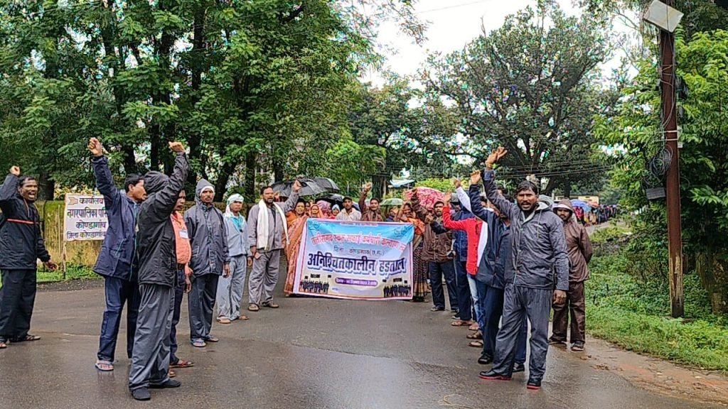 आपको बता दें जिला मुख्यालय कोंडागांव के डीएनके मैदान में 4 सितंबर से स्कूल सफाई कर्मचारी अपनी एक सूत्रीय मांग कलेक्टर दर को लेकर जिला स्तरीय अनिश्चितकालीन हड़ताल कर रहे है। वहीं 20 सितंबर को सफाई कर्मियों ने अपनी मांग को लेकर नगर में विरोध रैली निकाली, जिसमे सैकड़ों स्कूल सफाई कर्मचारी शामिल हुए। इस दौरान बड़ी संख्या में स्कूल सफाई कर्मियों ने विरोध प्रदर्शन करते हुए विधायक मोहन मरकाम के निवास का घेराव कर दिया है। आपको बता दे कोंडागांव विधायक एवम छत्तीसगढ़ के मंत्री मोहन मरकाम के निवास का घेराव किया गया है। इस दौरान एसडीओपी निमितेश सिंह परिहार, निरीक्षक प्रहलाद यादव सहित बड़ी संख्या में कोंडागांव पुलिस के जवान मौके पर मौजूद रहे। इस मामले पर स्कूल सफाई कर्मचारी संघ के जिला अध्यक्ष विष्णु दास कुलदीप ने मीडिया के सामने अपना बयान भी जारी किया है।