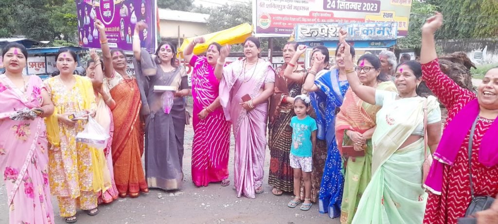 काँकेर– प्रधानमंत्री नरेन्द्र मोदी केबिनेट ने महिला आरक्षण बिल पर मुहर लगा दी जिसकी खुशी मनाते हुवे भारतीय जनता पार्टी महिला मोर्चा के द्वारा शहर के घड़ी चौक में फटाके फोड़ आतिशबाजी की गई जिसके बाद महिला मोर्चा ने एक दूसरे को गुलाल लगाकर मिठाई खिलाकर एकदूसरे को बधाई दी साथ ही नरेंद्र मोदी के नाम के नारे भी लगाए महिलाओं ने कहा महिला आरक्षण बिल पास होने से महिलाओं में खुशी का माहौल हैं इस कार्यक्रम में भारतीय जनता पार्टी प्रदेश अध्यक्ष श्रीमती शालिनी राजपूत पूर्व विधायक श्रीमती सुमित्रा मारकोले प्रदेश कार्यकारिणी श्रीमती विजयलक्ष्मी कौशिक उपाध्यक्ष श्रीमती निधि संचेती मीरा सलाम स्मृति कौशिक उकेशवरी उईके मीना उईके उषा ठाकुर प्यारी साहू कमला कांगे अनीता सोनी सुमन शर्मा अंजू नेगी कार्यकर्ता उपस्थित रहे