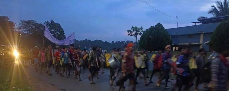 नारायणपुर। विगत 11 महीनो से चल रहा आंदोलन को आगे बढ़ाते अपनी मांगों को लेकर 50 किलोमीटर का सफर पैदल तय कर अबूझमाड़ के हजारों आदिवासी नारायणपुर जिला मुख्यालय , राशन पानी के साथ साप्ताहिक बाजार स्थल बखरूपारा आ पहुंचे है , यही पर धरना प्रदर्शन करेंगे । आंदोलन को देखते हुए भारी संख्या में पुलिस बल तैनात है ।