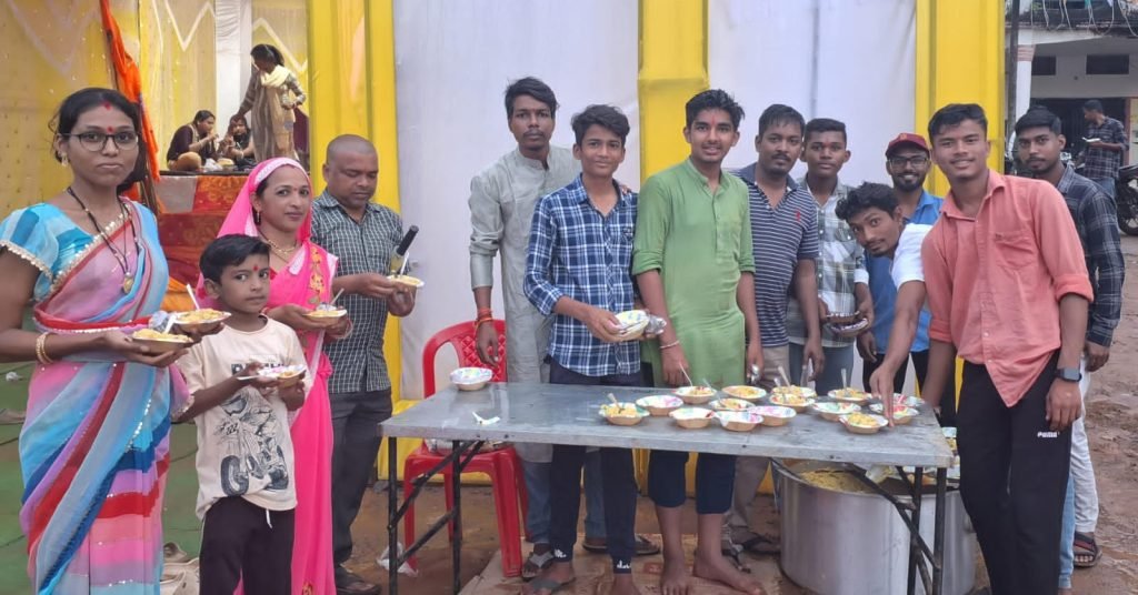 फरसगांव – नगर के सार्वजनिक उत्सव गणेश समिति द्वारा हर वर्ष की तरह इस वर्ष भी गणेश चतुर्थी पर्व को लेकर अस्प्ताल चौक में भगवान गणेश की मूर्ति स्थापना की गई है । भक्तो के द्वारा सुबह शाम भगवान गणेश की पूजा की जा रही है । वही 28 सितम्बर गुरुवार समिति द्वारा हवन पूजन किया गया। जिसके बाद शाम को फरसगांव नगर के यूथ स्पोर्ट क्लब(वायएससी) के द्वारा भंडारे का आयोजन कर भक्तो को प्रसाद के रूप में खिचडी का वितरण किया गया। समिति द्वारा आज रात में बच्चों के लिए रिकॉर्डिंग डांस प्रतियोगिता का आयोजन भी किया गया है । समिति के लोगो ने बताया कि 29 सितम्बर शुक्रवार की रात आर्केस्ट्रा का आयोजन किया जाएगा और 30 सितम्बर शनिवार को मांदरी नृत्य और डीजे धुन में नाचते कुदते नगर भ्रमण कर भगवान गणेश की मूर्ति का विसर्जन किया जाएगा ।