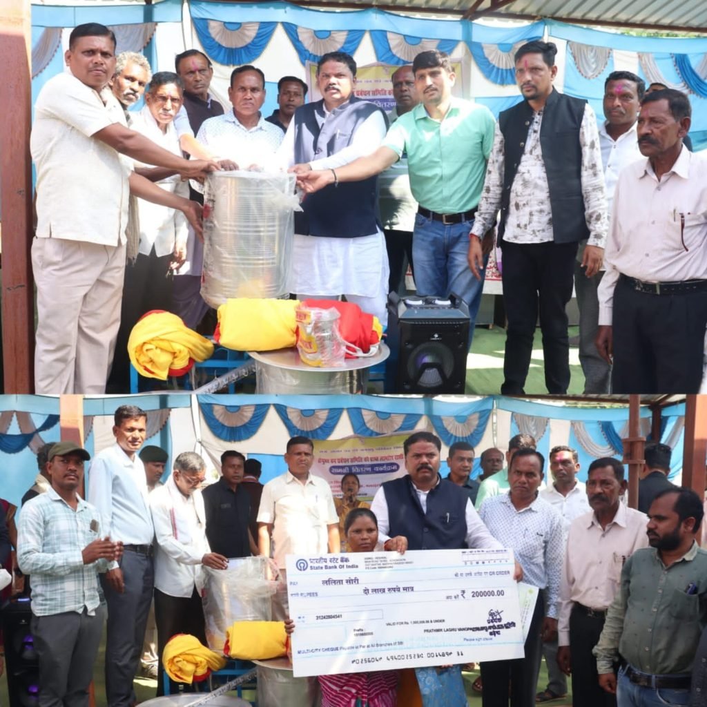 फरसगांव – केशकाल विकासखंड अंतर्गत ग्राम पंचायत कोहकामेटा में वन विभाग द्वारा संयुक्त वन प्रबंधन समितियों को प्राप्त लाभांश राशि से सामग्री वितरण कार्यक्रम का आयोजन किया गया था। जिसमें बतौर मुख्य अतिथि केशकाल विधायक संतराम नेताम शामिल हुए। इस दौरान विधायक के हाथों से वन प्रबंधन समितियों को कूप कटाई से प्राप्त होने वाली लाभांश राशि का उपयोग कर नालाझर, गौरगांव व कोहकमेटा के समितियों के लिए सामुहिक रूप से उपयोगी सामग्रियां जैसे टेंट, बर्तन, आलमारी, टेबल, कुर्सी, साउंड सिस्टम, चटाई आदि का वितरण किया गया। साथ ही शहीद महेंद्र कर्मा जीवन बीमा अनुदान राशि वितरण कार्यक्रम के तहत 5 लोगों को 2-2 लाख रुपए का चेक विधायक के हाथों प्रदान किया गया।