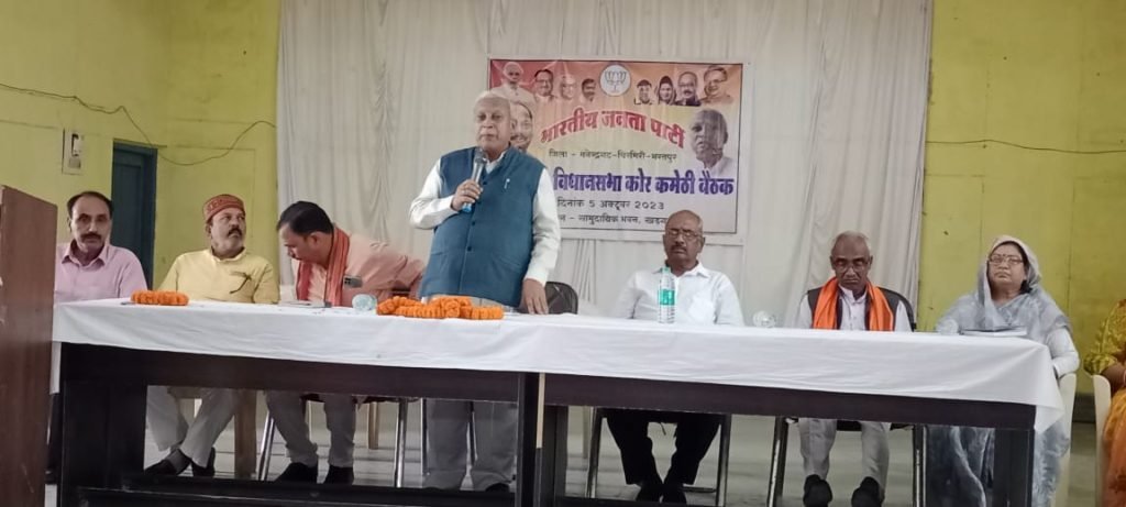 भारतीय जनता पार्टी मनेन्द्रगढ़ विधान सभा के कोर ग्रुप की बैठक खडगवा में संपन्न हुई. बैठक मे भाजपा पूर्व प्रदेश संगठन मंत्री रामप्रताप सिंह ,भाजपा जिला अध्यक्ष अनिल केसरवानी , पूर्व विधायक श्याम बिहारी जायसवाल, जिला पंचायत अध्यक्ष श्रीमती रेणुका सिंह, भाजपा के वरिष्ठ नेता राधेश्याम अग्रवाल,रामेश्वर पाण्डेय, लखन लाल श्रीवास्तव सहित कोर ग्रुप के सभी सदस्यगण उपस्थित थे। तथा कोर ग्रुप की बैठक मे प्रदेश के पूर्व संगठन मंत्री माननीय रामप्रताप जी एवं भाजपा जिलाध्यक्ष अनिल केशरवानी सहित वरिष्ठो ने आगामी विधान सभा चुनाव को लेकर दिये मार्गदर्शन ।