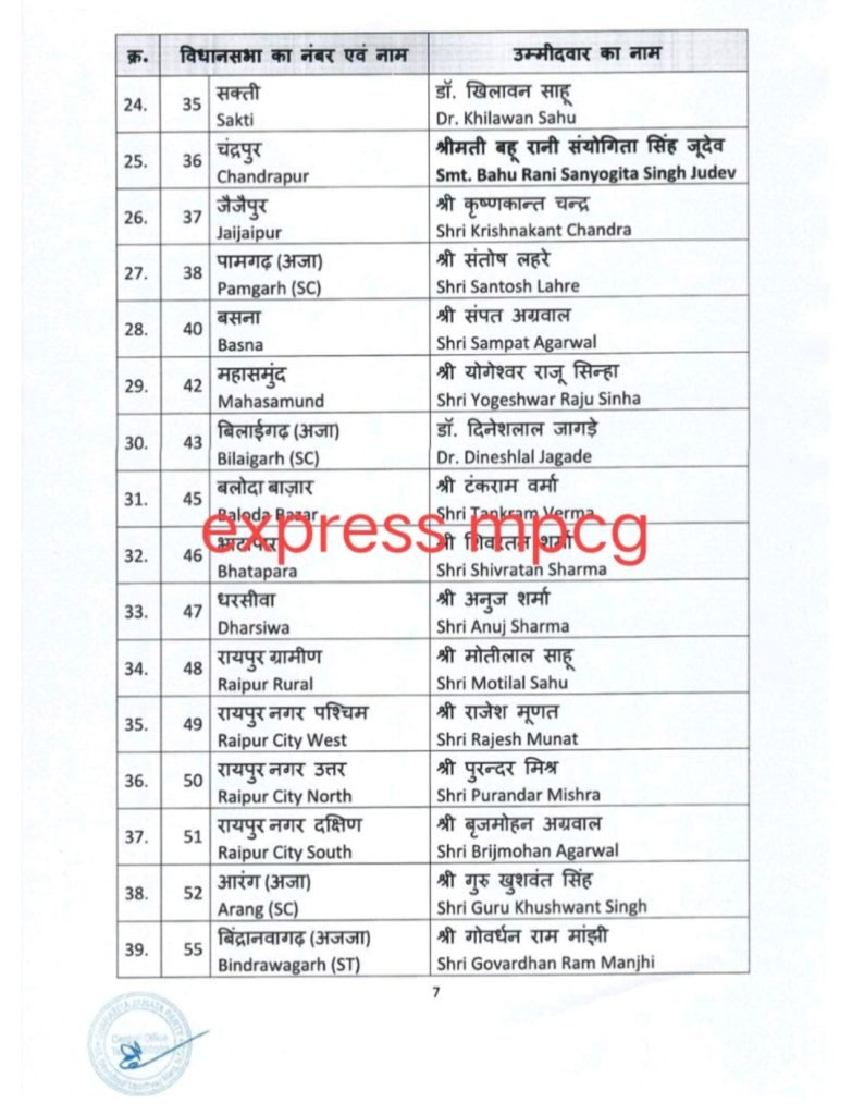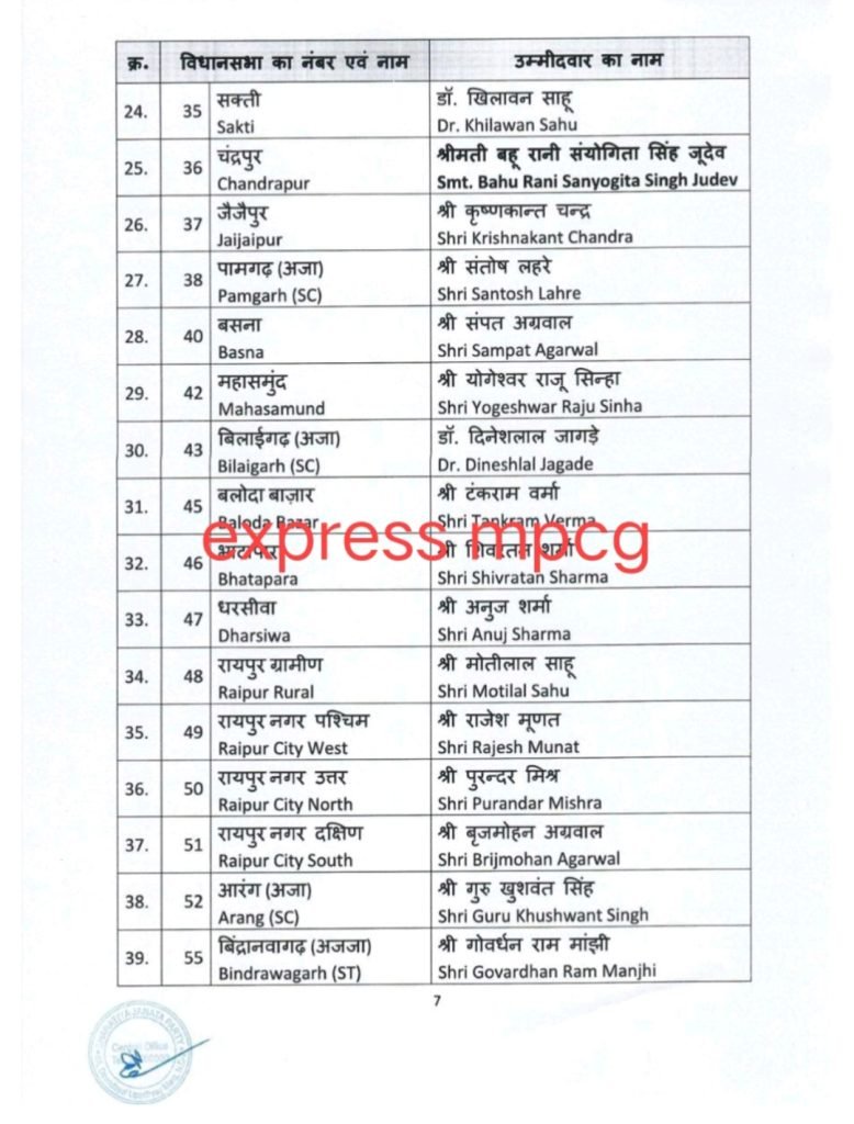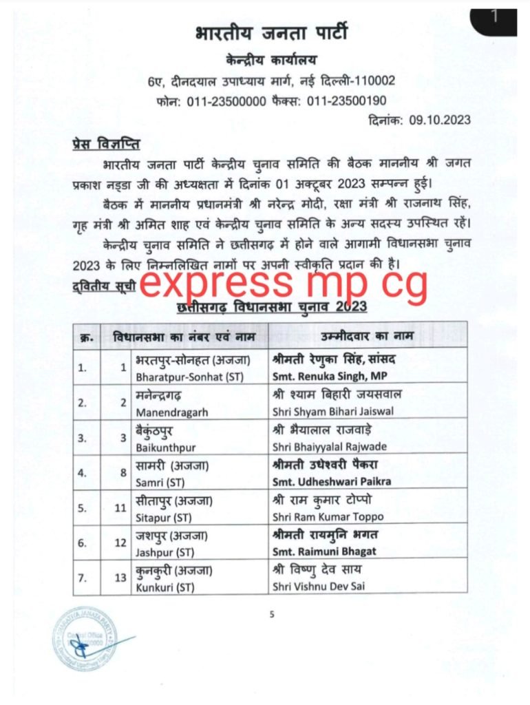छत्तीसगढ़ भारतीय जनता पार्टी ने अपनी दूसरी सूची जारी..