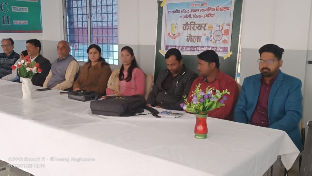 करकेली,,, उमरिया जिले के करकेली तहसील अंतर्गत सीएम राईस शासकीय विद्यालय मे मध्यप्रदेश शासन की मनसा अनुसार कैरियर मेले का आयोजन किया गया. कार्यक्रम की शुरुआत मुख्य अतिथि के रूप में भाजपा मंडल अध्यक्ष द्वारा व प्रचार डॉक्टर ए पी सिंह द्वारा मां सरस्वती की छायाचित्र दीप प्रज्वलित कर कार्यक्रम हुआ प्रारंभ प्रचार उपस्थित स्कूली छात्र और छात्राओं को समझाया की आप लोगो अभी से अपने कैरियर को ध्यान मे रखते हुए आगे की पढ़ाई करना है. आप सभी छात्र और छात्राओं को एक लक्ष्य निर्धारित करना है की आगे किस क्षेत्र में फोकस करना है और उसी के अनुसार आगे की पढ़ाई करनी है. कक्षा 9 से कक्षा 12वीं तक की पढ़ाई हमारे आगे की पढ़ाई के लिए एक मजबूत नीव का काम करती है कार्यक्रम मे उपस्थित संग्राम सिंह ने कहा की अभी से आप सभी लोगो को अपने कैरियर को ध्यान मे रखते हुए आगे की पढ़ाई करनी है और अभी से आप लोगो को एक लक्ष्य निर्धारित करना है की हमें किस क्षेत्र में आगे बढ़ना है अगर आप सभी लोग अभी से एक निश्चित लक्ष्य और एकाग्र मन से आगे की तैयारी करेंगे तो निश्चित ही सफलता आपके कदम चूमेगी. कार्यक्रम मे उपस्थित , उप प्रचार अवध नारायण त्रिपाठी उपस्थित छात्र छात्राओं को अपने उद्बोधन में समझाते हुए कहा कि आप सभी लोग इस देश के भविष्य के निर्माता है आप मे से कई लोग इंजीनियर. कलेक्टर. तहसीलदार तथा एक सफल व्यवसाई बनेंगे. लेकिन इसके लिए अभी से आप सभी को अपने भविष्य के कैरियर को ध्यान में रखते हुए आगे की पढ़ाई करनी पड़ेगी. जिस क्षेत्र में जिन छात्र और छात्राओं की रूचि है सभी उसी को अपना कैरियर मान कर अभी से क्षेत्र में प्रयास शुरू कर दें. और इस कविता को अपनी दिलो दीमक में बैठा ले.की मन में है विश्वास . पूरा है विश्वास. हम होंगे कामयाब. एक दिन. कार्यक्रम मे मुख्य रूप से संदीप कोल उद्योग विभाग , आर एन पटेल स्वास्थ्य विभाग, योगेश सिंह चौहान पॉलिटेक्निक विभाग, डॉक्टर पिंकी सोमकुवर आदर्श कॉलेज उमरिया, अशोक बारी आईसेक्ट, ओंकार सिंह जिला पंचायत सदस्य, ओम सिंह रघुवंशी, सरपंच संगीता सिंह, शंकर सिंह शिक्षक, लक्ष्मीकांत महोबिया शिक्षक, संदीप असाटी , रविंद्र नाथ दुबे, मुकेश कुमार महोबिया, पुनीत द्विवेदी, सहित समस्त विद्यालय का स्टाफ और छात्र-छात्राएं उपस्थित रहे.,,