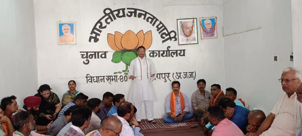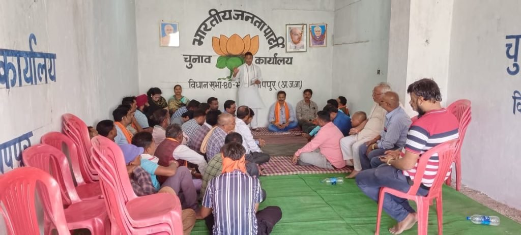 भानुप्रतापपुर, भारतीय जनता पार्टी विधानसभा(80) भानुप्रतापपुर 2023 के चुनाव संबंधित रणनीति एवं चर्चा के लिए आज भाजपा जिला अध्यक्ष सतीश लटिया ने मंडल भानुप्रतापपुर चुनाव कार्यलय में अपने अपने पोलिंग बूथ शक्ति केन्द्रो में जवाबदारी से काम करना है और एकजुट होकर कमल खिलाना है संगठन के विस्तार पूर्वक रूपरेखा बनाकर कार्यक्रम के बारे में कहा भाजपा जिला महामंत्री एवं विधानसभा संयोजक बृजेश सिंह चौहान ने विस्तार पूर्वक बात राखी, इस अवसर पर कान के लोकसभा क्षेत्र के सांसद सम्माननीय श्री मोहन मांडवी जी ने भी उपस्थित कार्यकर्ताओं को इस बार कमर कसके 2023 विधानसभा चुनाव भानु प्रतापपुर मंडल से जीतना है बहुत ही सौभाग्य की बात है कि इस बार वहां बतापुर भाजपा मंडल से आपका प्रत्याशी चुना गया है पार्टी ने इसलिए आप सबको अपनी अधिक लगन और मेहनत से उनको जीतने के लिए अभी से लग जाना है डोर टू डोर घर-घर जाकर प्रचार प्रसार करना है मोदी जी के द्वारा नव वर्ष के विकास कार्यों को भूपेश बघेल कांग्रेस सरकार के भ्रष्टाचार वादा खिलाफी के बारे में जन जन तक पहुंचना है कार्यक्रम का संचालन भाजपा मंडल अध्यक्ष नरोत्तम सिंह चौहान ने किया इस अवसर में बड़ी संख्या में भारतीय जनता पार्टी के कार्यकर्ता पदाधिकारी उपस्थित थे