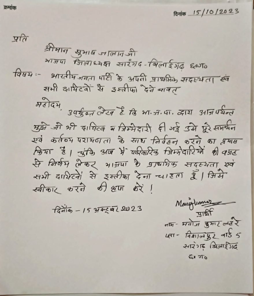 सारंगढ़ बिलाईगढ़ ब्रेकिंग – भाजपा से इस्तीफा देने वाले मनोज लहरें ने थामा बसपा पार्टी का दामन