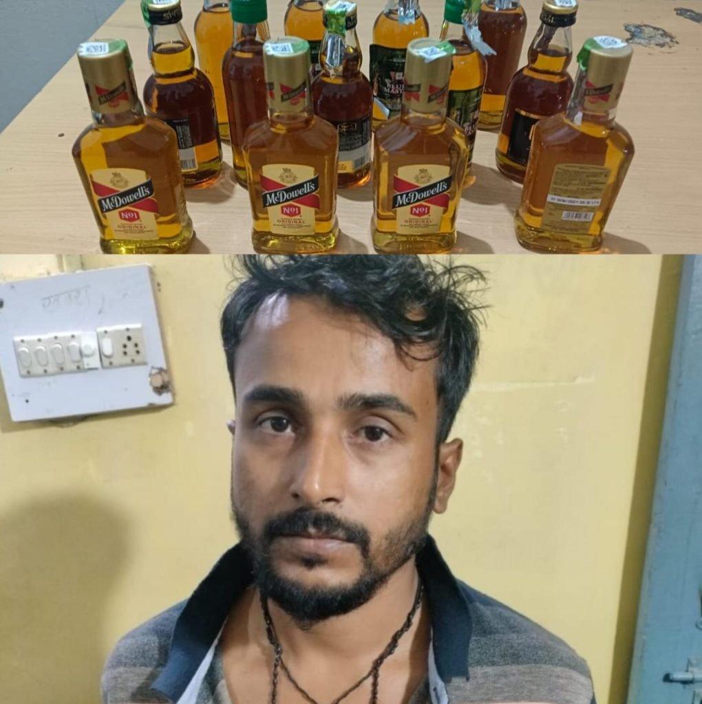 फरसगांव – कोण्डागांव जिले के थाना फरसगांव क्षेत्रांतर्गत ग्राम जुगानी कैम्प में अवैध शराब बिक्री की सूचना प्राप्त हो रही थी उक्त सूचना पर पुलिस अधीक्षक कोण्डागांव वाय अक्षय कुमार के निर्देशन एवं श्रीमान अतिरिक्त पुलिस अधीक्षक दौलत राम पोर्त तथा पुलिस अनुविभागीय अधिकारी फरसगांव अनिल कुमार विश्वकर्मा महोदय के पर्यवेक्षण में थाना फरसगांव पुलिस द्वारा 17 अक्टूबर मंगलवार को मुखबीर के बताये स्थान ग्राम जुगानी कैम्प जाकर एक व्यक्ति गौरव शील पिता गणेश शील उम्र 36 वर्ष निवासी जुगानी कैम्प को पकड़े, जिसके कब्जे से ब्लफ मास्टर विस्की अंग्रेजी शराब 5 पौवा कीमत 1000 रूपये, मेकडाल नम्बर वन अंग्रेजी शराब 04 पौवा कीमत 800 रूपये, पार्टी स्पेशल विस्की अंग्रेजी शराब 03 पौवा कीमत 600 रूपये कुल अंग्रेजी शराब 02 लीटर 160 एम.एल. कुल रकम 2400 रूपये मिला जिसे मुताबिक जप्तीपत्रक गवाहों के समक्ष जप्त कर कब्जा पुलिस लिया गया। आरोपी के विरूद्ध थाना फरसगांव में अपराध क्रमांक 97 / 2023 धारा 34 (1), ख आबकारी एक्ट पंजीबद्ध कर आरोपी को गिरफ्तार किया गया हैं।
