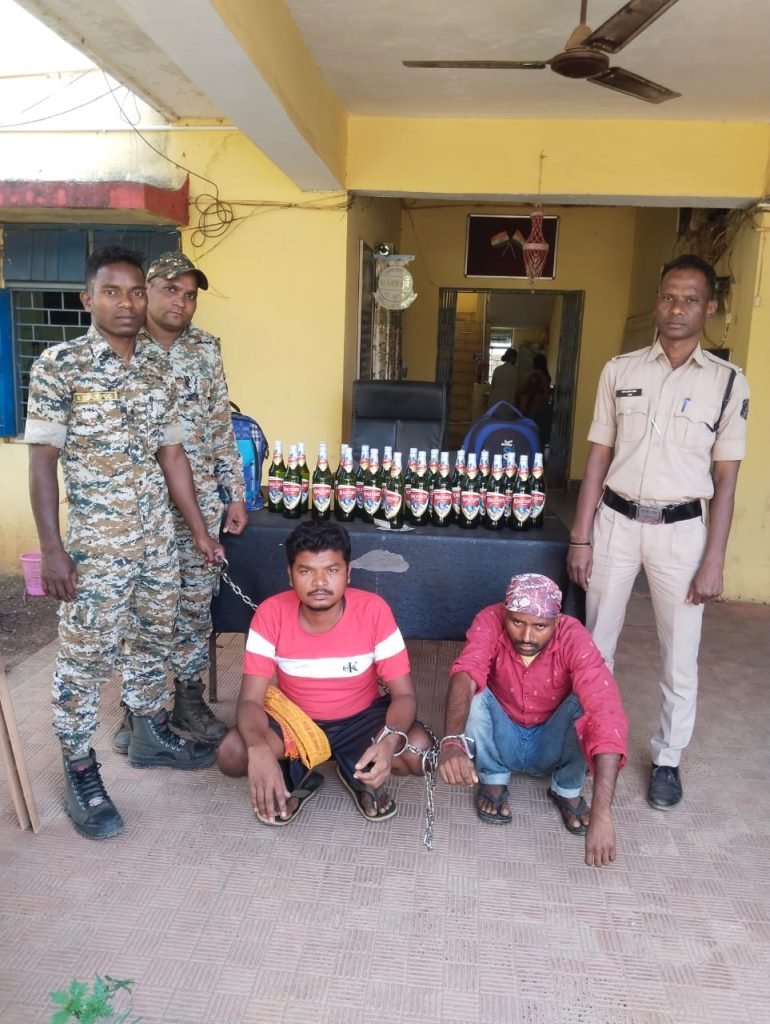 मिली जानकारी के मुताबिक मुखबिर से पुलिस को मिली सूचना के आधार पर बोधघाट पुलिस की टीम रेलवे स्टेशन पहुंची, जहां मुखबिर की निशानदेही पर दो युवकों से पूछताछ की गई। पूछताछ में उन्होंने अपना नाम डिलमिली निवासी मुंडोराम कर्मा 25 साल व मंगडूराम मंडावी 25 साल बताया। पुलिस ने जब उनकी तलाशी ली, उनके कब्जे से पुलिस ने 14.300 लीटर अंग्रेजी शराब (बीयर), जिनकी कीमत 2420 रूपए बताई जा रही है, जब्त की गई। इसके साथ ही उनके कब्जे से 1250 रूपए नगद भी मिले हैं।