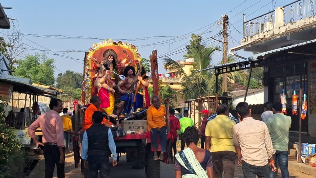 फरसगांव – नवरात्र पर्व में नगर के दुर्गा उत्सव समिति द्वारा हर वर्ष की नगर के अस्प्ताल मैदान में पंडाल बनाकर माँ दुर्गा की प्रतिमा स्थापित की जाती है । यह 35 वा वर्ष है इस वर्ष भी बड़े पंडाल बनाकर माँ दुर्गा की प्रतिमा स्थापित की गई है । दुर्गा समिति के द्वारा नव दिनों तक विविधान पूर्वक माँ दुर्गा की पूजा अर्चना की गई और दसवे दिन 24 अक्टूबर मंगलवार को बड़े धूमधाम से माँ दुर्गा के प्रतिमा का नगर भ्रमण के बाद नगर के एक मात्र तालाब में प्रतिमा का विसर्जन किया गया ।